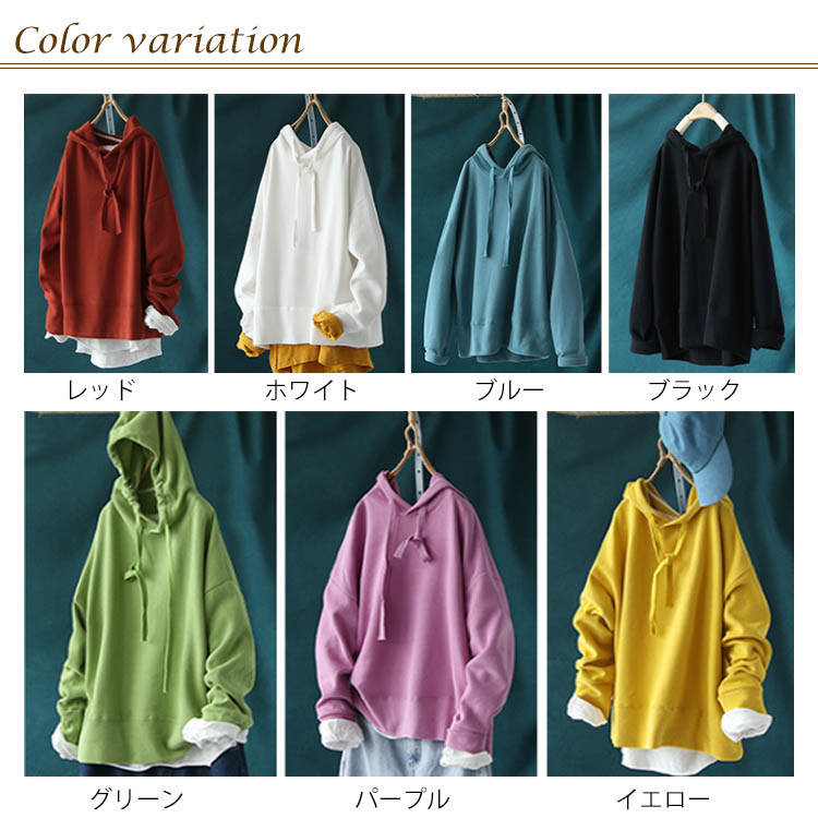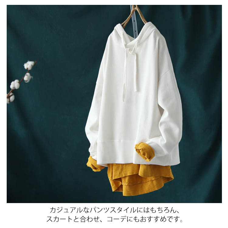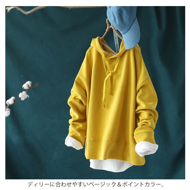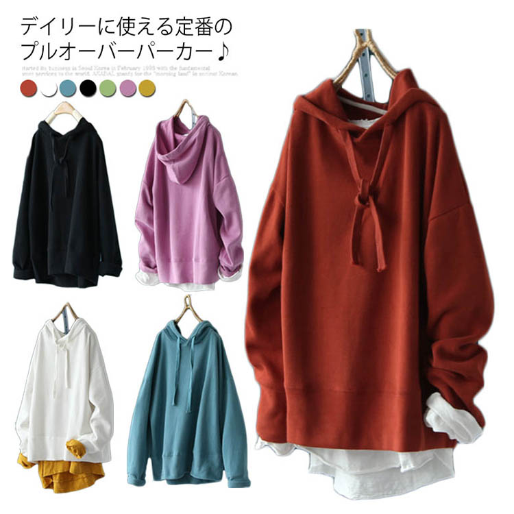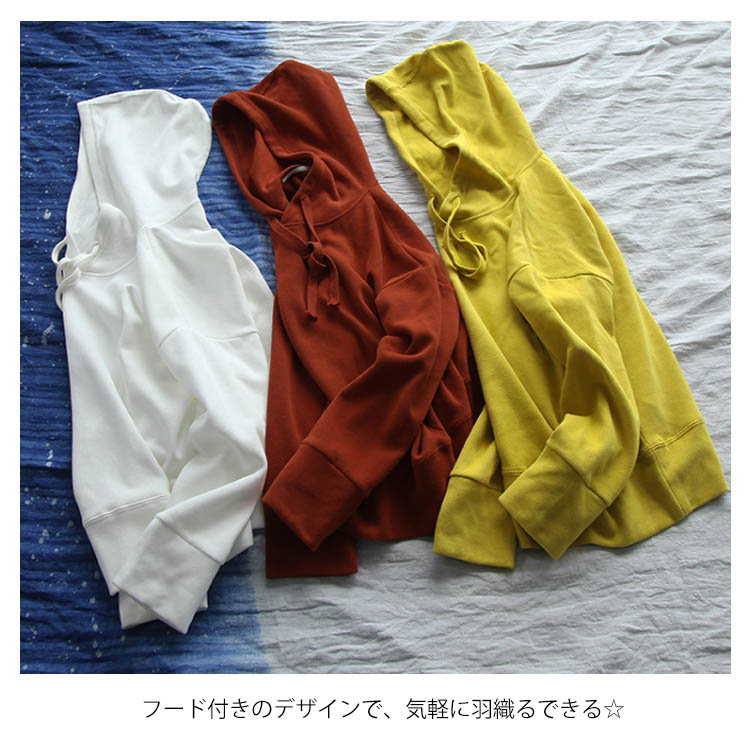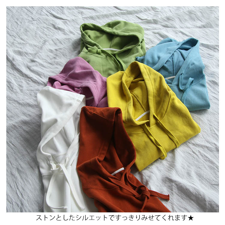 送料無料 全7色 パーカー 長袖 トップス レディース フード付き Tシャツ 無地 春秋 シンプル お洒落 カットソー ゆったり カジュアル 新作