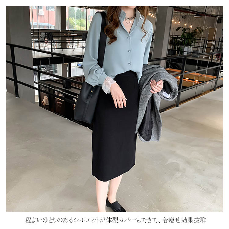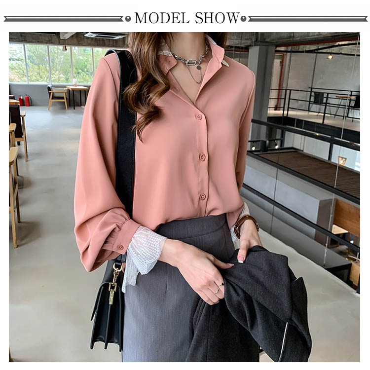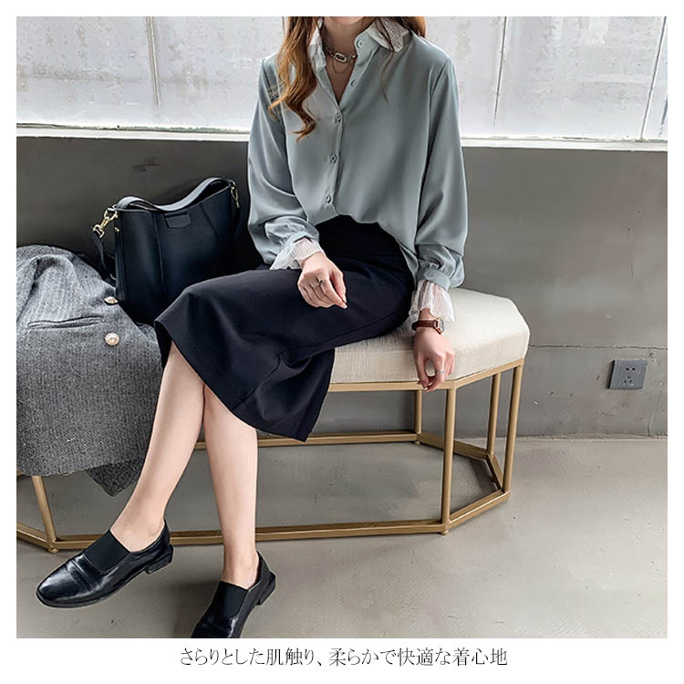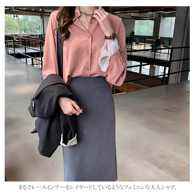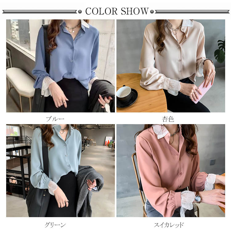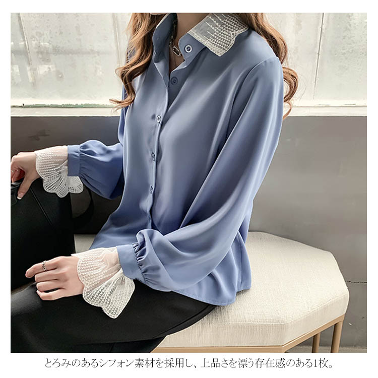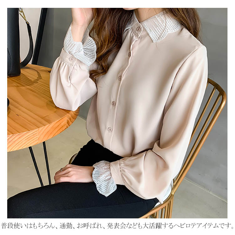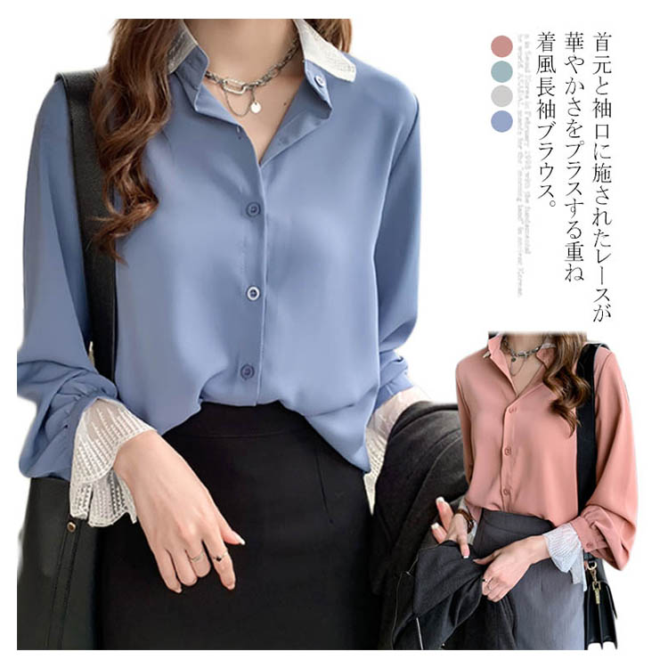 ブラウス シャツ レース 重ね着風 レディース トップス 長袖ブラウス 長袖シャツ 無地 切替レース ゆったり 大きいサイズ とろみ シフォン ドレープ オシャレ 通勤 お出かけ お呼ばれ オフィス OL 2019 秋新作