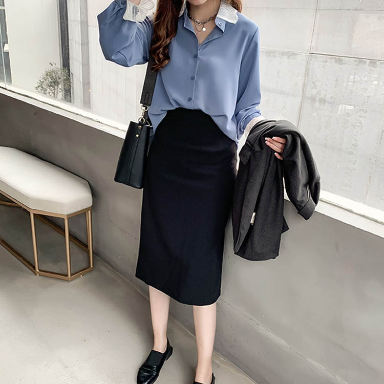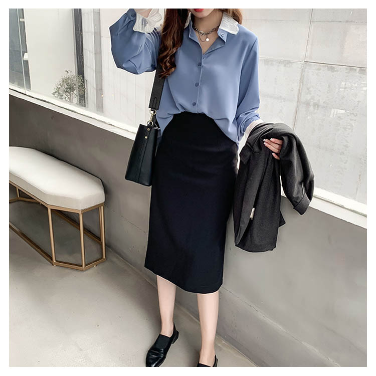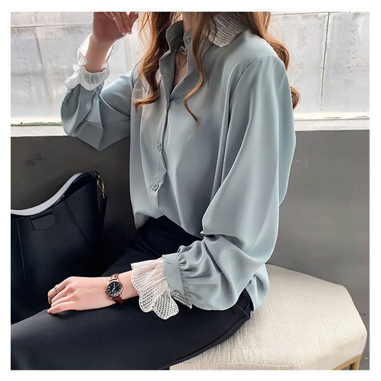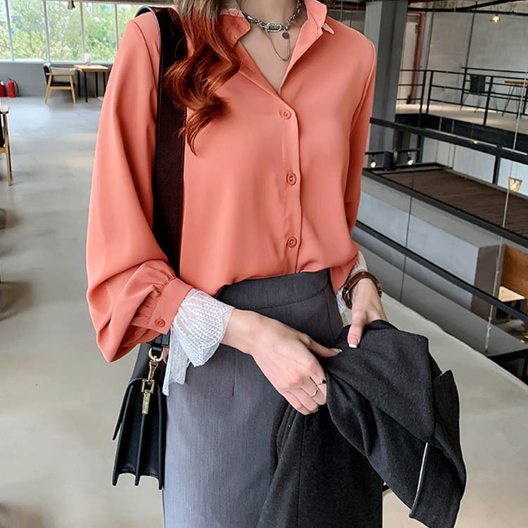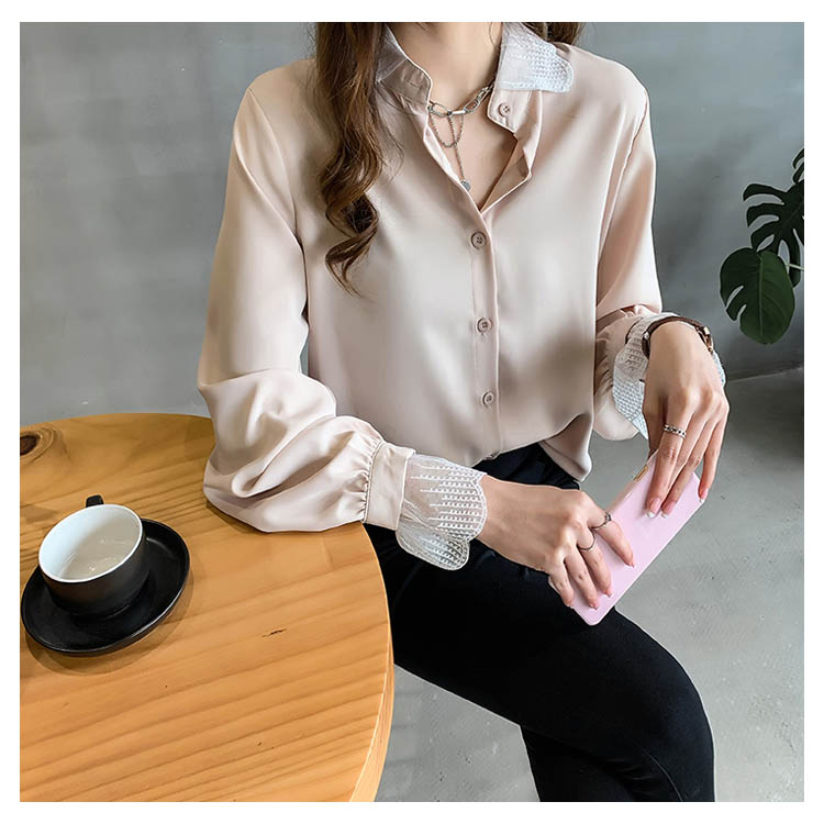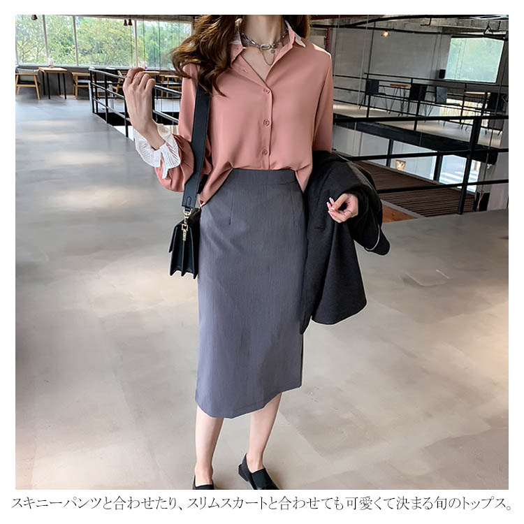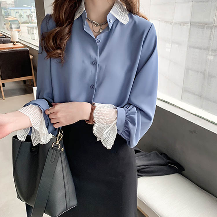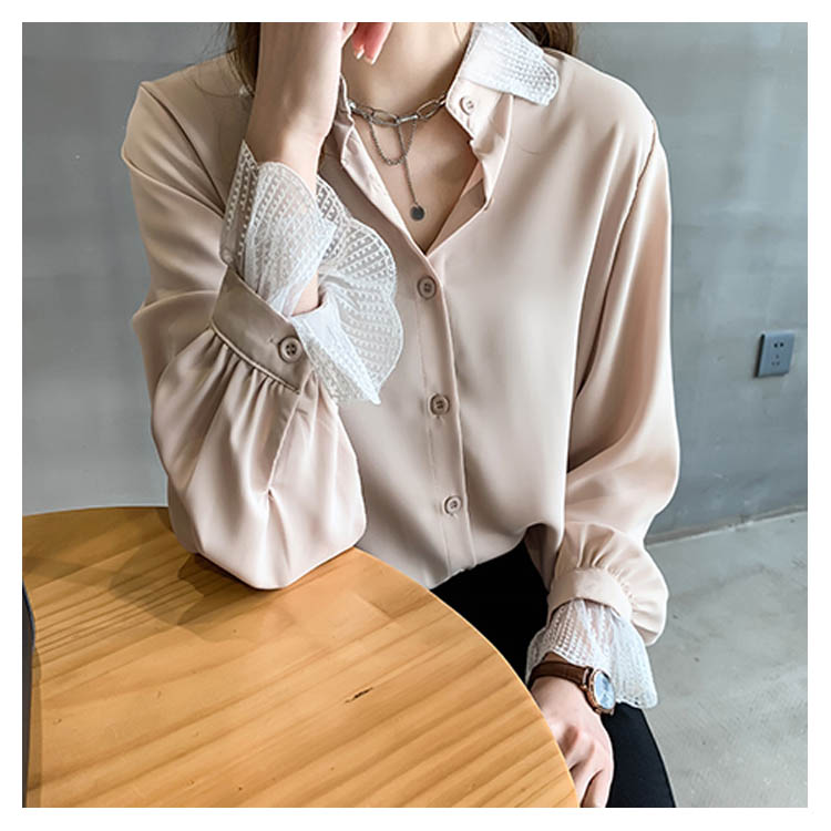 ブラウス シャツ レース 重ね着風 レディース トップス 長袖ブラウス 長袖シャツ 無地 切替レース ゆったり 大きいサイズ とろみ シフォン ドレープ オシャレ 通勤 お出かけ お呼ばれ オフィス OL 2019 秋新作