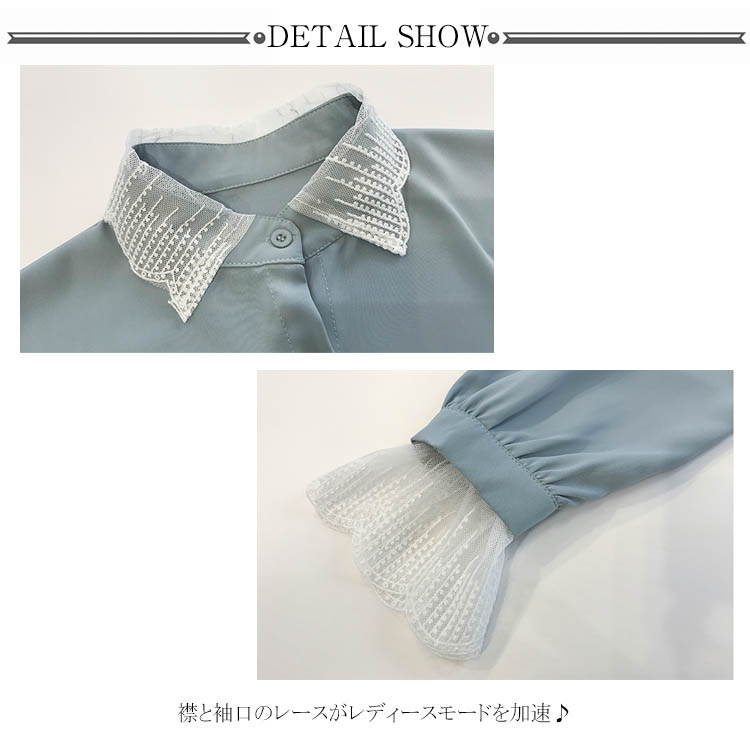 | 首元と袖口に施されたレースが華やかさをプラスする重ね着風長袖ブラウス。 まるでレースインナーをレイヤードしているようなフェミニンな大人シャツ。 スキニーパンツと合わせたり、スリムスカートと合わせても可愛くて決まる旬のトップス。 とろみのあるシフォン素材を採用し、上品さを漂う存在感のある1枚。 普段使いはもちろん、通勤、お呼ばれ、発表会なども大活躍するヘビロテアイテムです。 | |