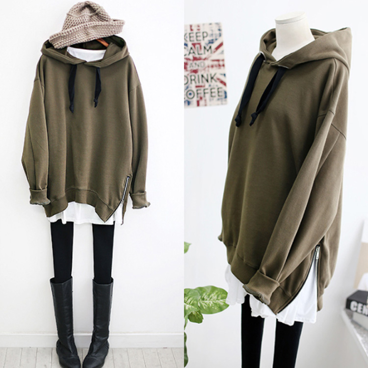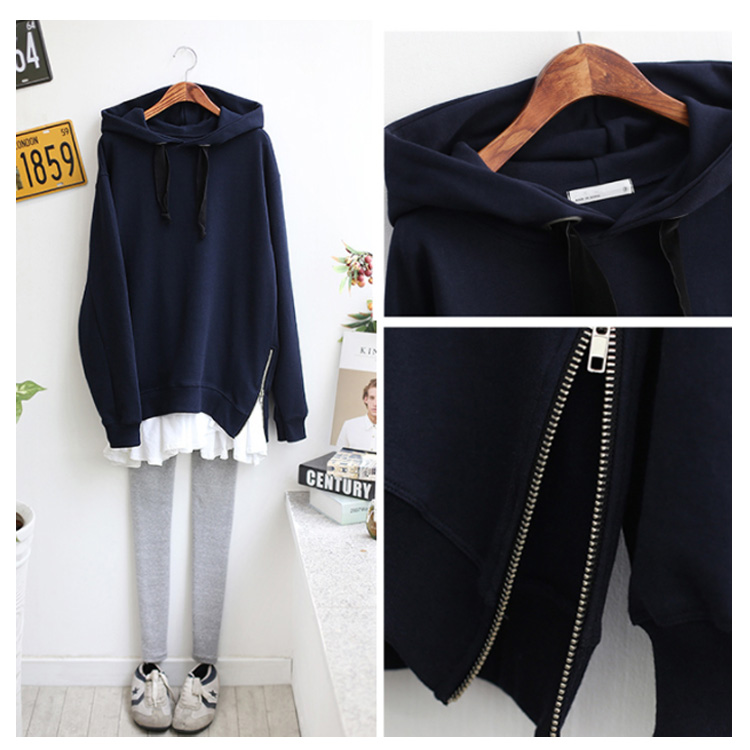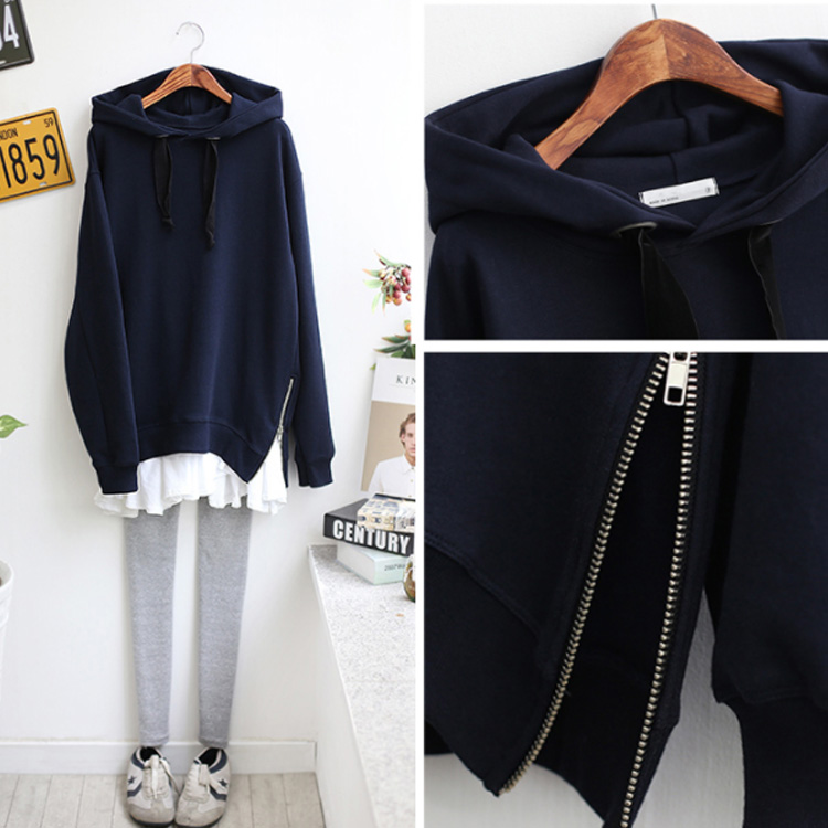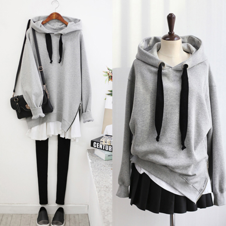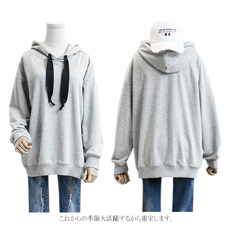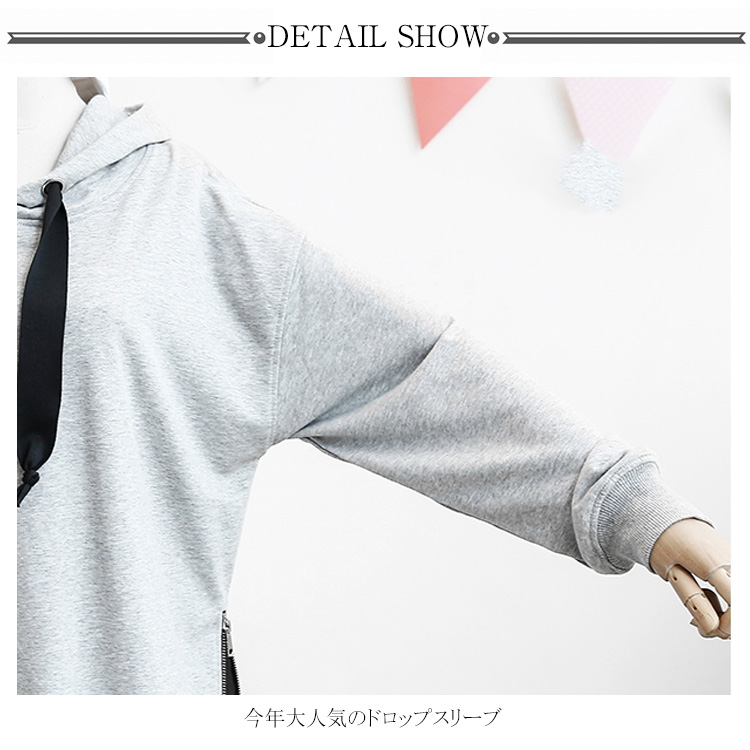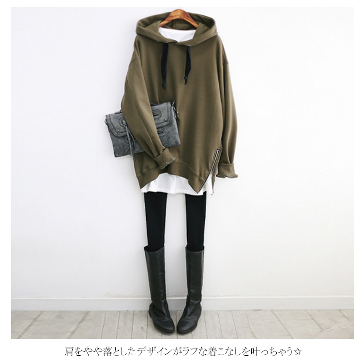 パーカー プルオーバー ゆったり レディース サイドジップ スリット フード付き ゆるシルエット 無地 学生 通学 通勤 体型カバー ボイスライク オーバーサイズ トップス 長袖 スウェット ドロップスリーブ