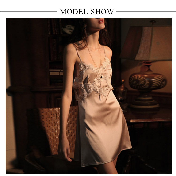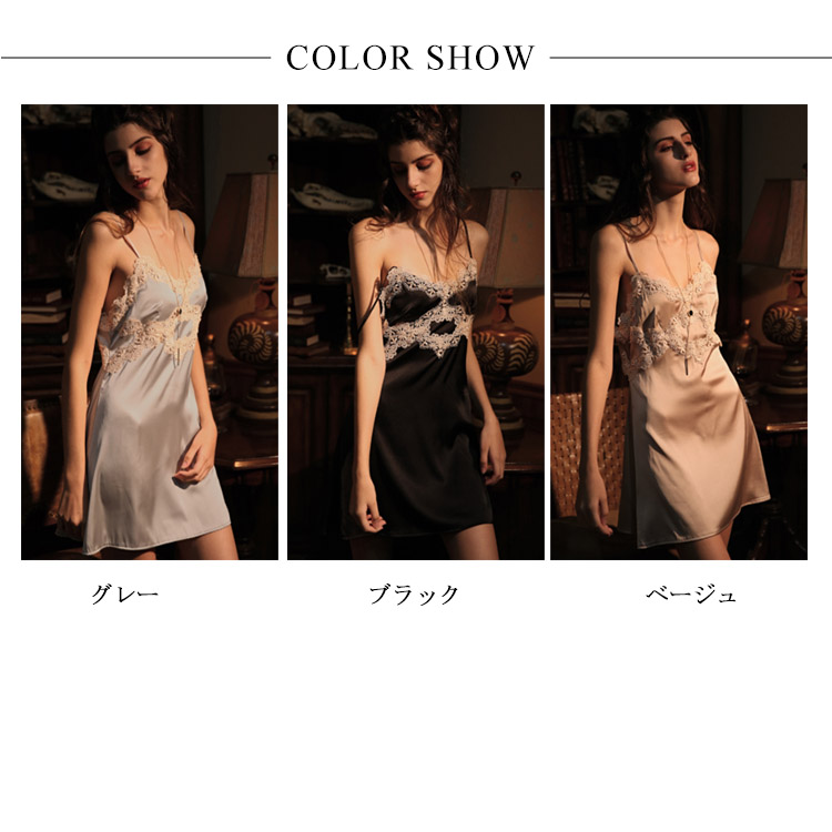 送料無料 夏パジャマ レディース キャミソール 寝巻き 部屋着 ナイトウェア ルームウェア 寝間着 ワンピパジャマ ノースリーブ ショート丈 シルク風 レース切替 Vネック 花柄飾り セクシー プレゼント 抜け感 リラックス