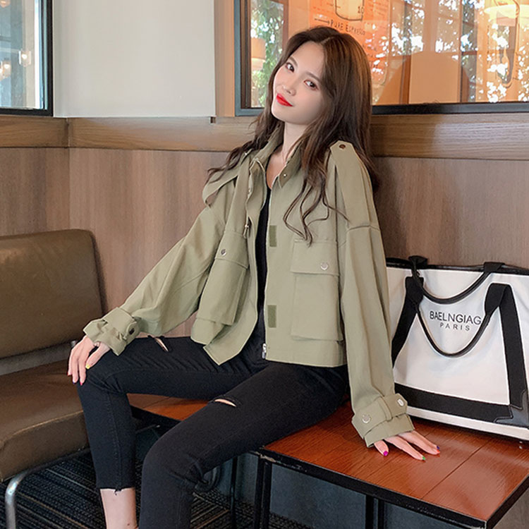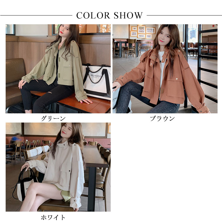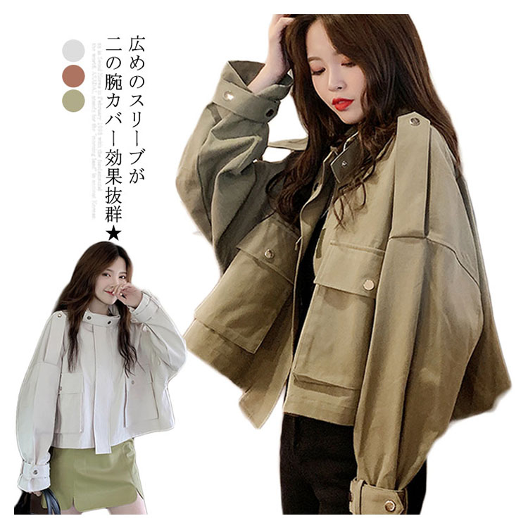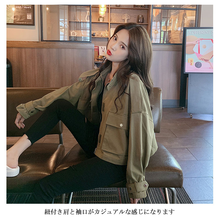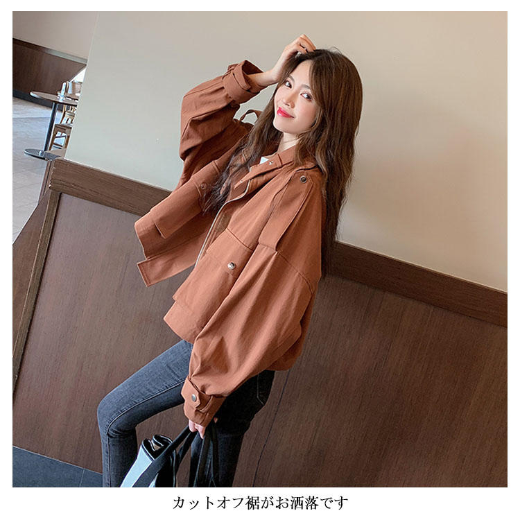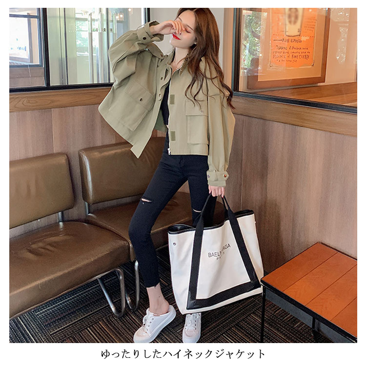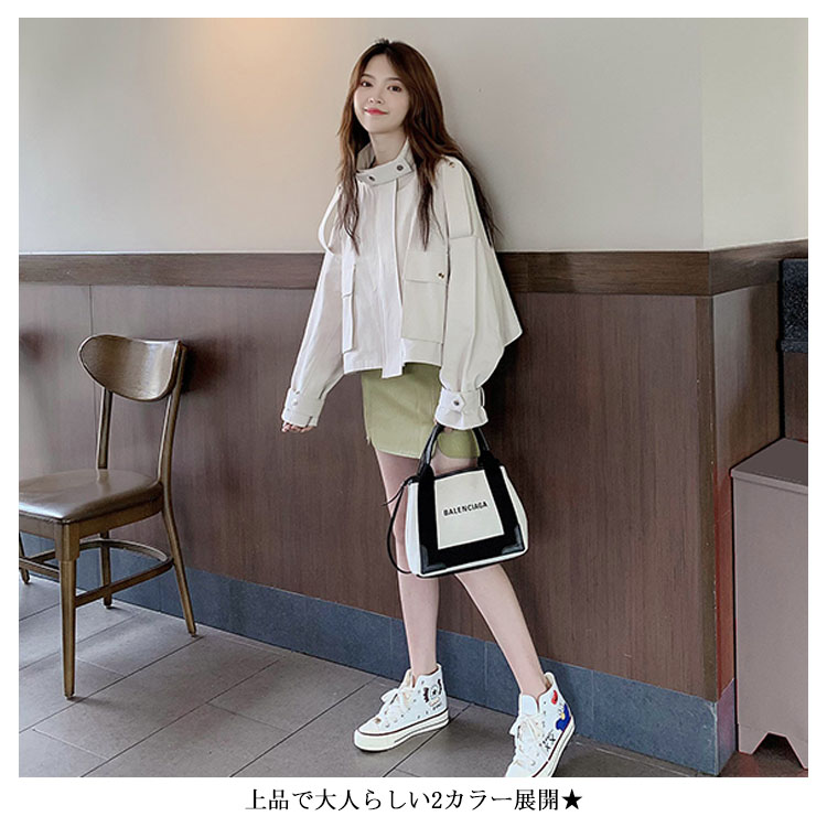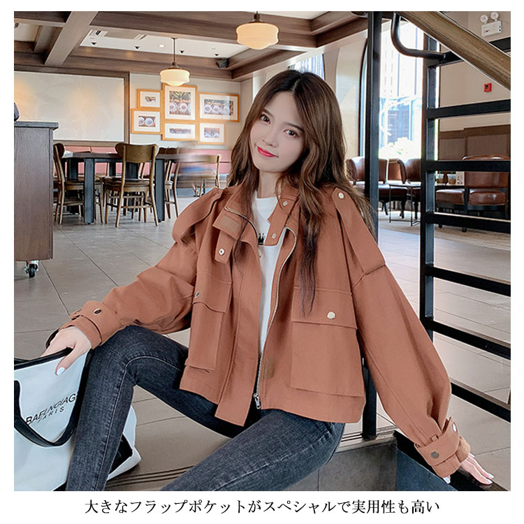 送料無料 ジャケット レディース 長袖 コート アウター ショート丈 ハイネック フラップポケット カットオフ 紐付き カジュアル 大人 シンプル お洒落 体型カバー 普段着 秋新作