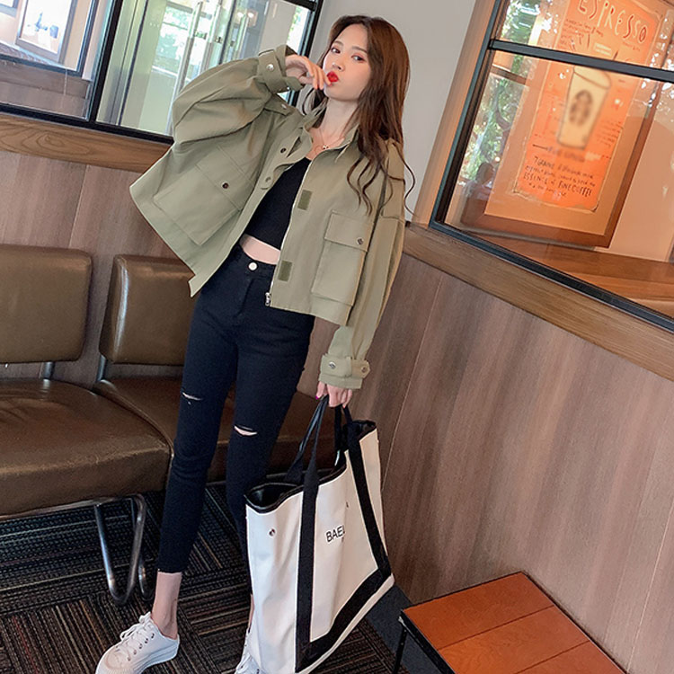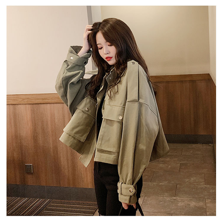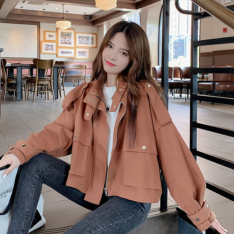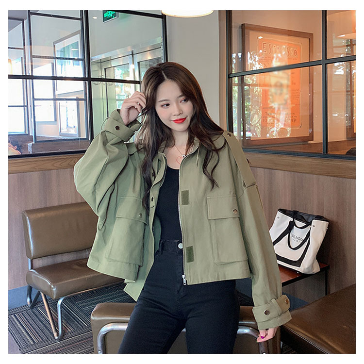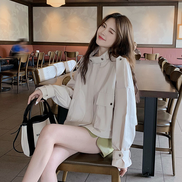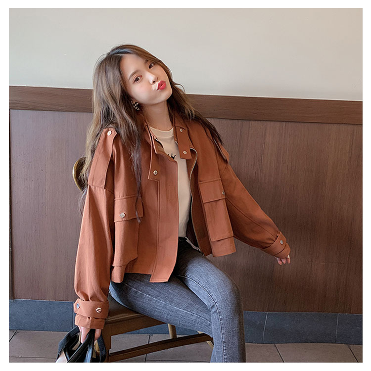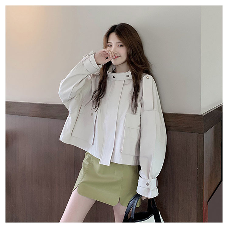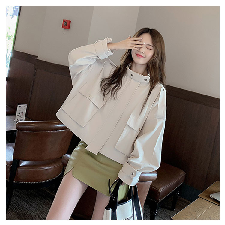 送料無料 ジャケット レディース 長袖 コート アウター ショート丈 ハイネック フラップポケット カットオフ 紐付き カジュアル 大人 シンプル お洒落 体型カバー 普段着 秋新作