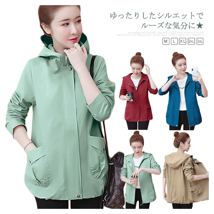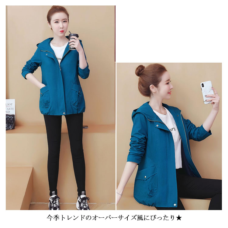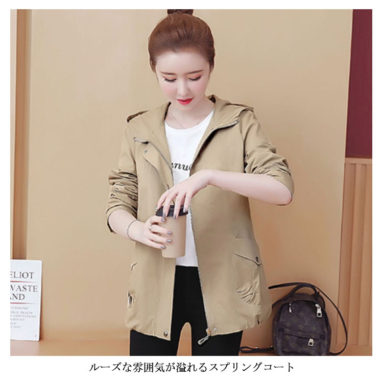 送料無料 スプリングコート レディース トレンチコート 長袖 ゆったり カジュアルコート パーカコート フード付きコート オーバーサイズ ルーズ お洒落 カジュアル アウター コート 体型カバー 春秋 秋新作