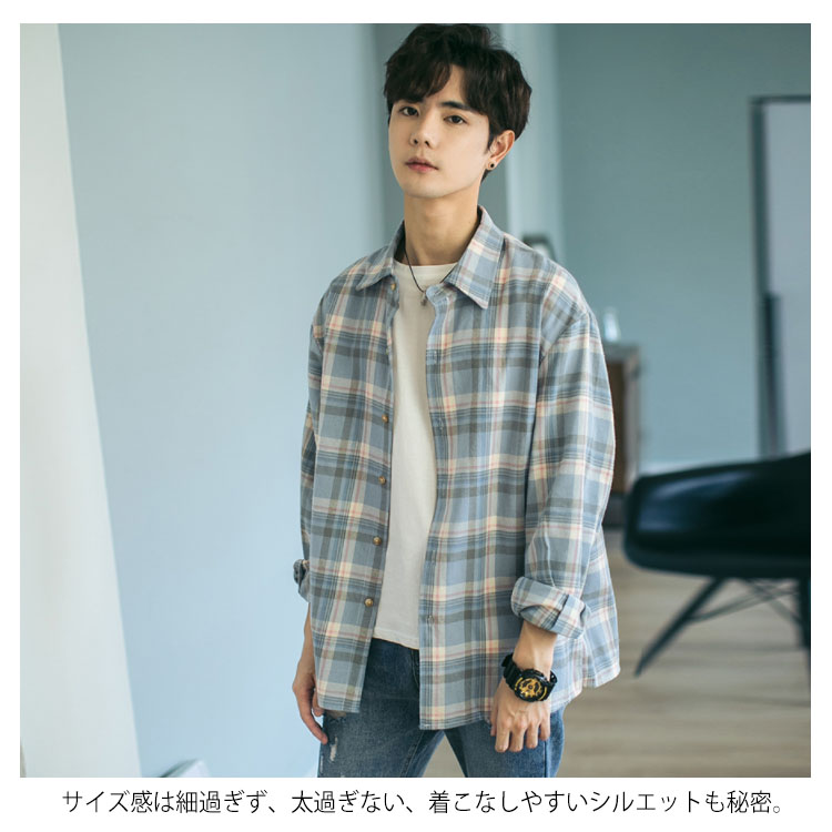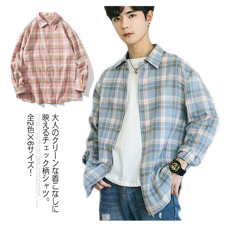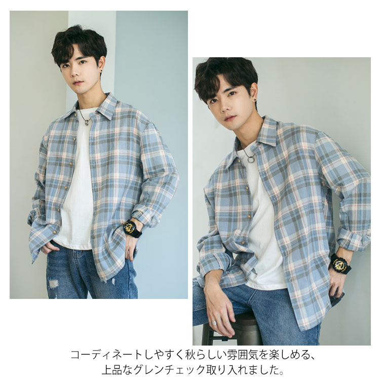 《送料無料》全2色×6サイズ!シャツ メンズ メンズシャツ 長袖 チェック柄シャツ グレンチェック トップス カジュアルシャツ 春 秋