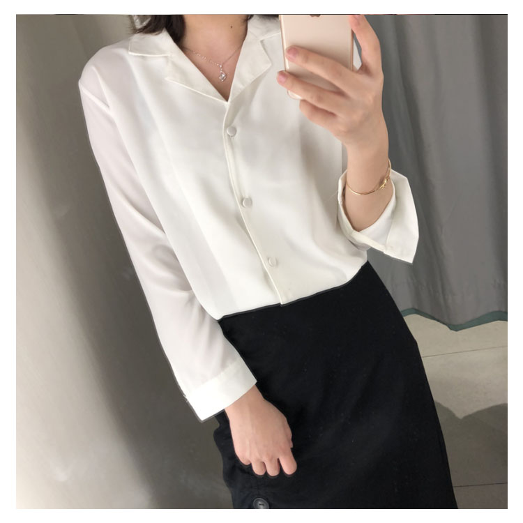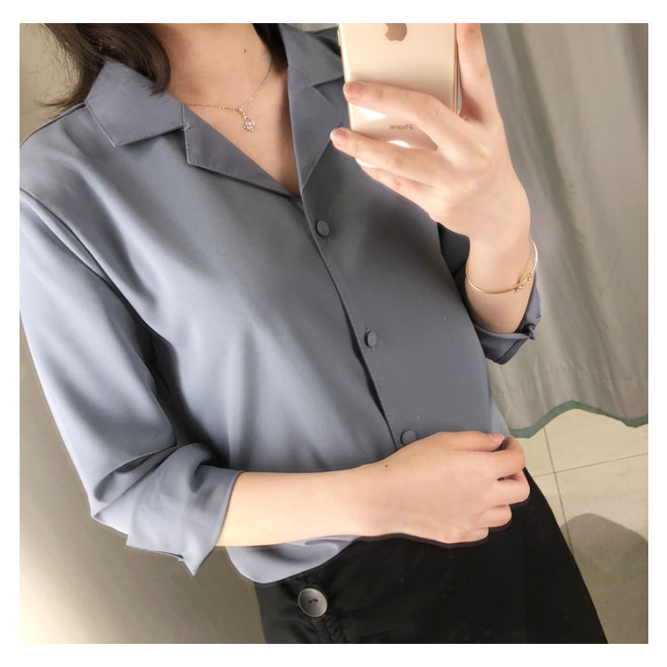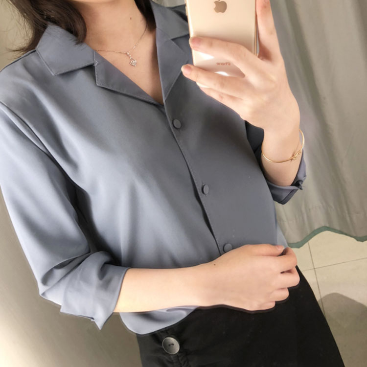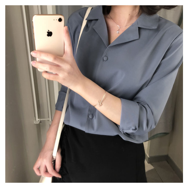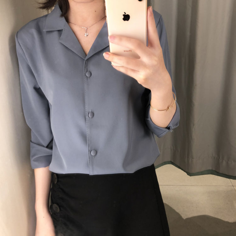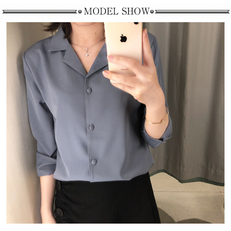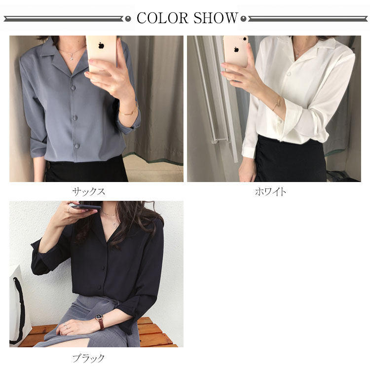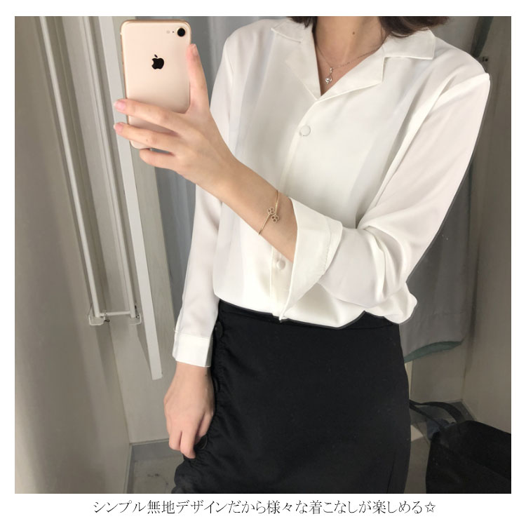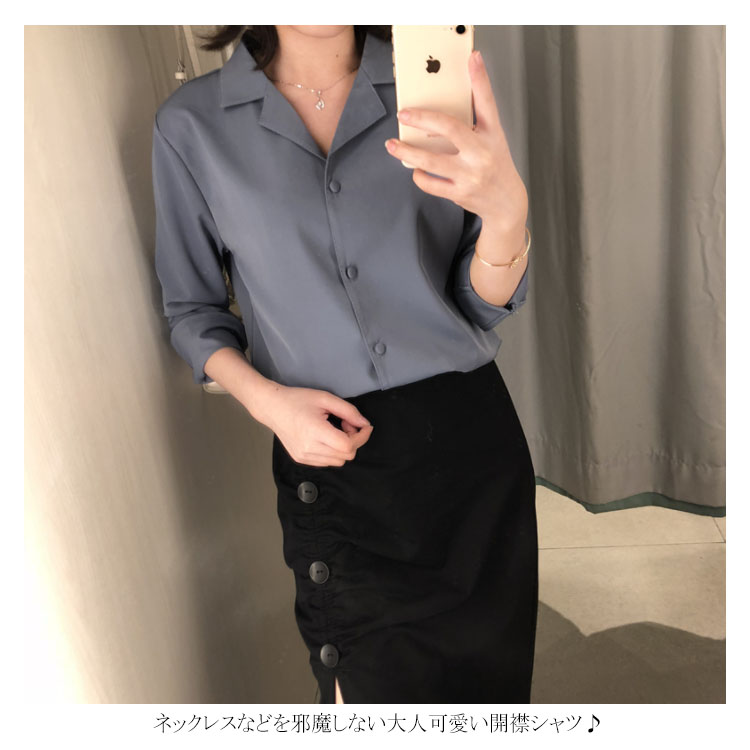 | レトロ雰囲気溢れる オープンカラーブラウス。 ネックレスなどを邪魔しない大人可愛い開襟シャツ♪ シンプル無地デザインだから様々な着こなしが楽しめる✩ 共布のぬいぐるみボタンが上品さ漂い、細部までこだわりの1枚◎ | |