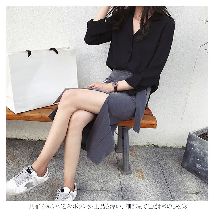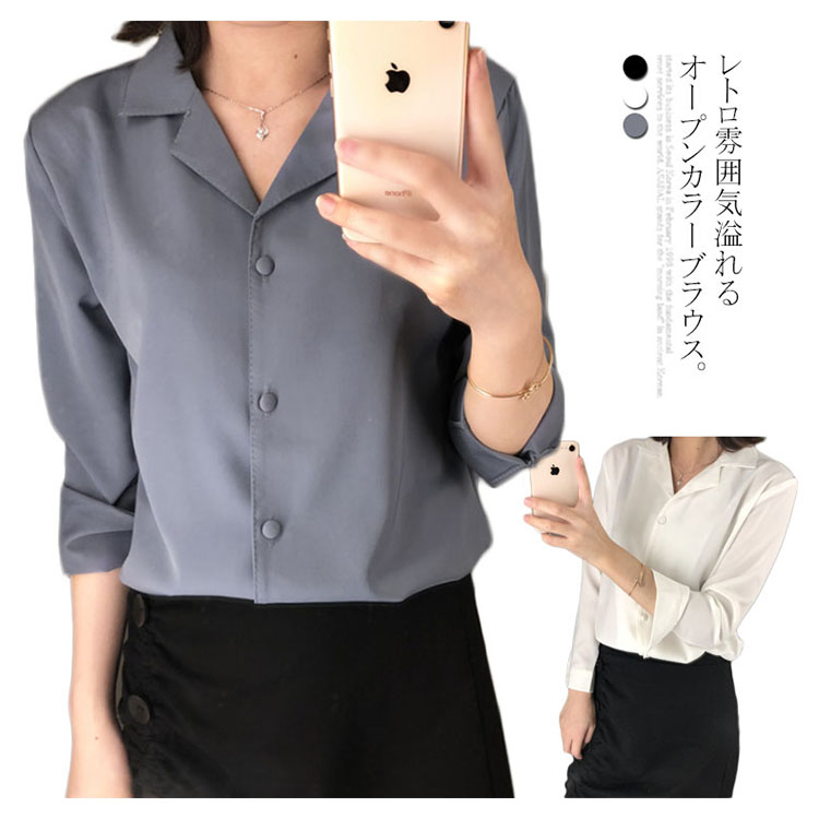 送料無料 シフォンシャツ ブラウス オープンカラー 長袖 開襟シャツ ドレープ とろみ レトロ カラーシャツ ぬいぐるみボタン 可愛い オシャレ カジュアル キレイめ 大きいサイズ 無地 通勤 お出かけ お呼ばれ