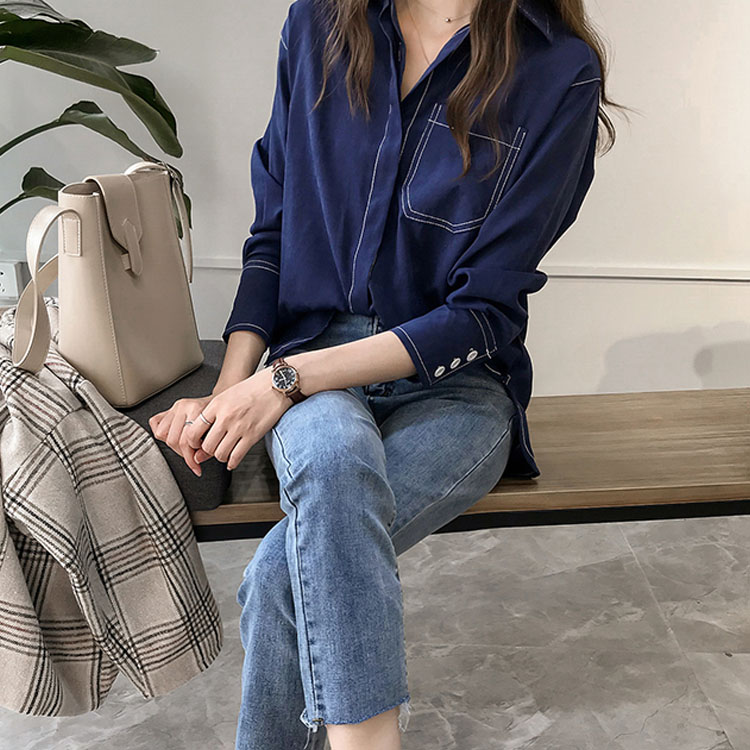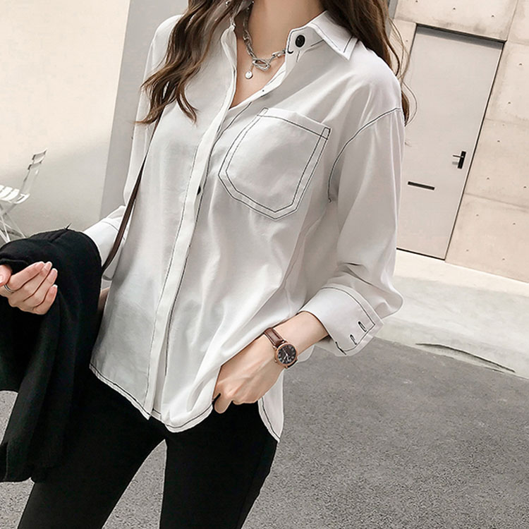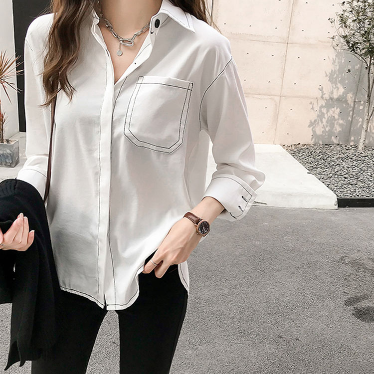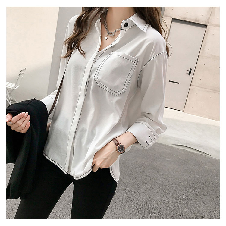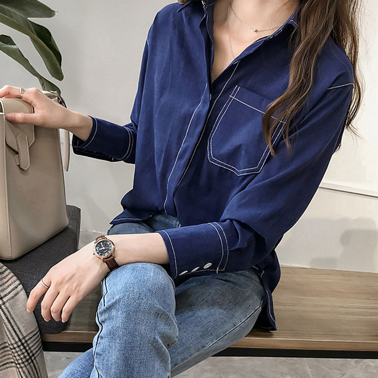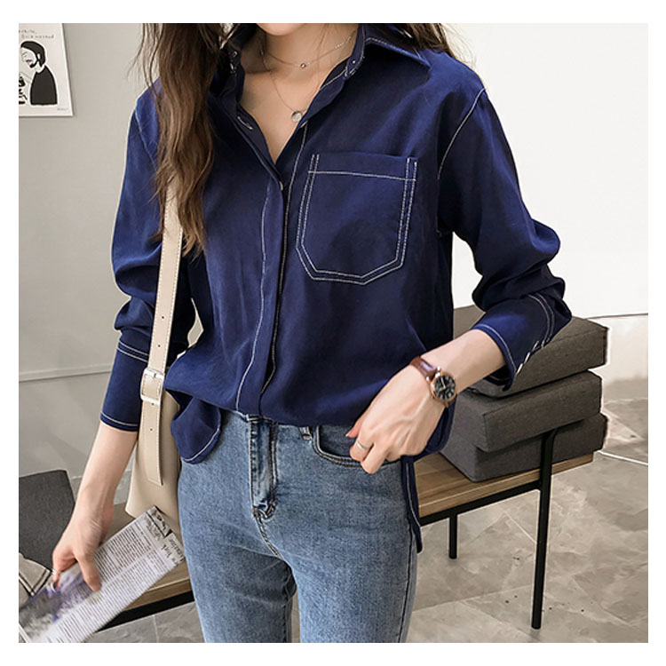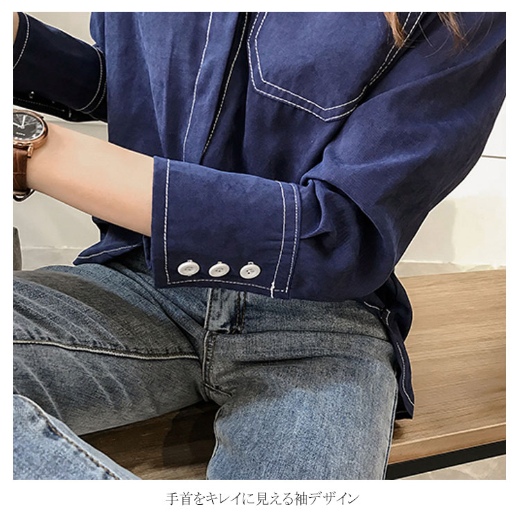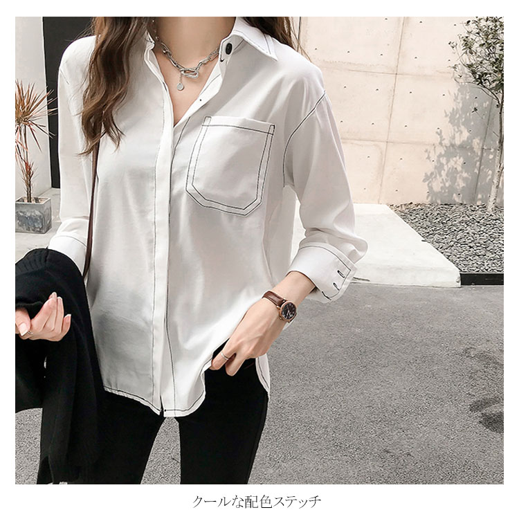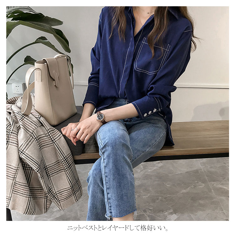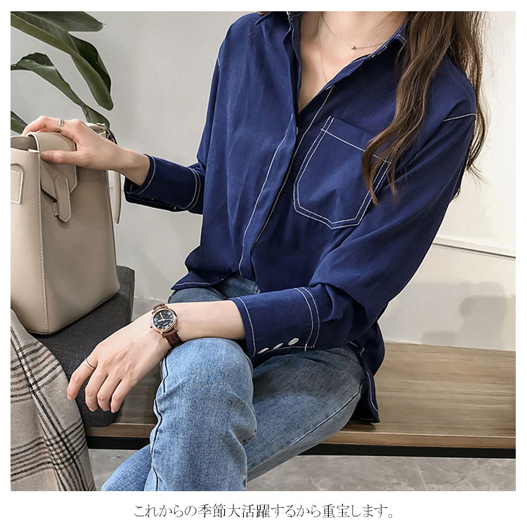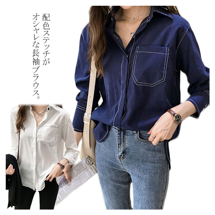 | 配色ステッチがオシャレな長袖ブラウス。 ベーシックデザインなので合わせやすい。 柔らかく通気性抜群のシャツ、カジュアルスタイルからフォーマルスタイルまで色々使えます。 ニットベストとレイヤードして格好いい。 これからの季節大活躍するから重宝します。 | |