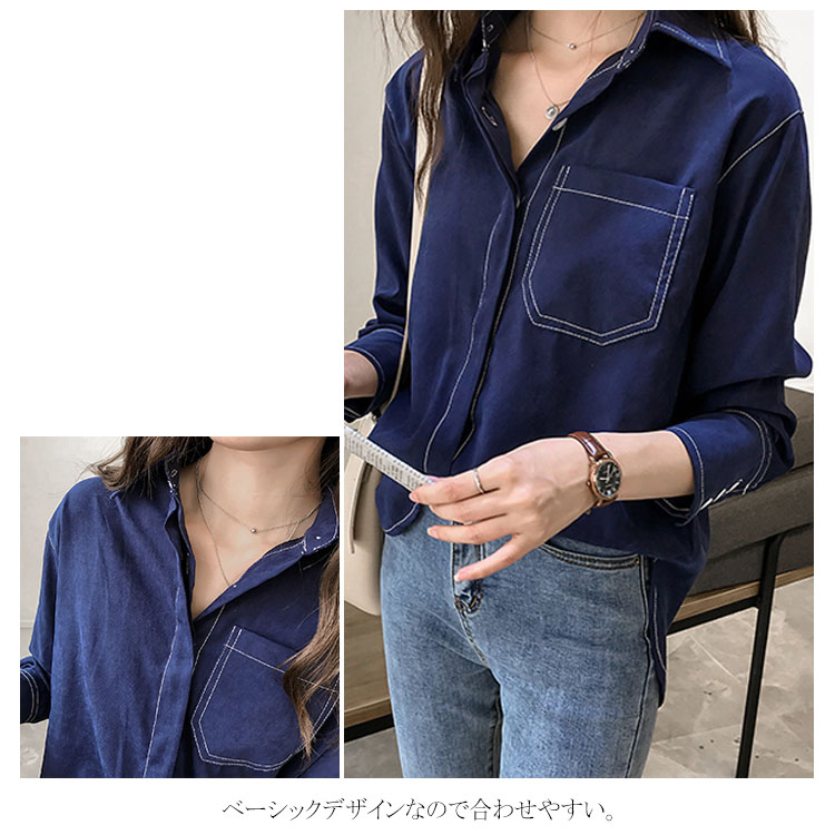 シャツ ブラウス 長袖 レディース トップス 秋冬 シンプル 無地 配色ステッチ ポケット付き ライトアウター ジャケット シャツジャケット ゆとり 通勤 通学 20代 30代