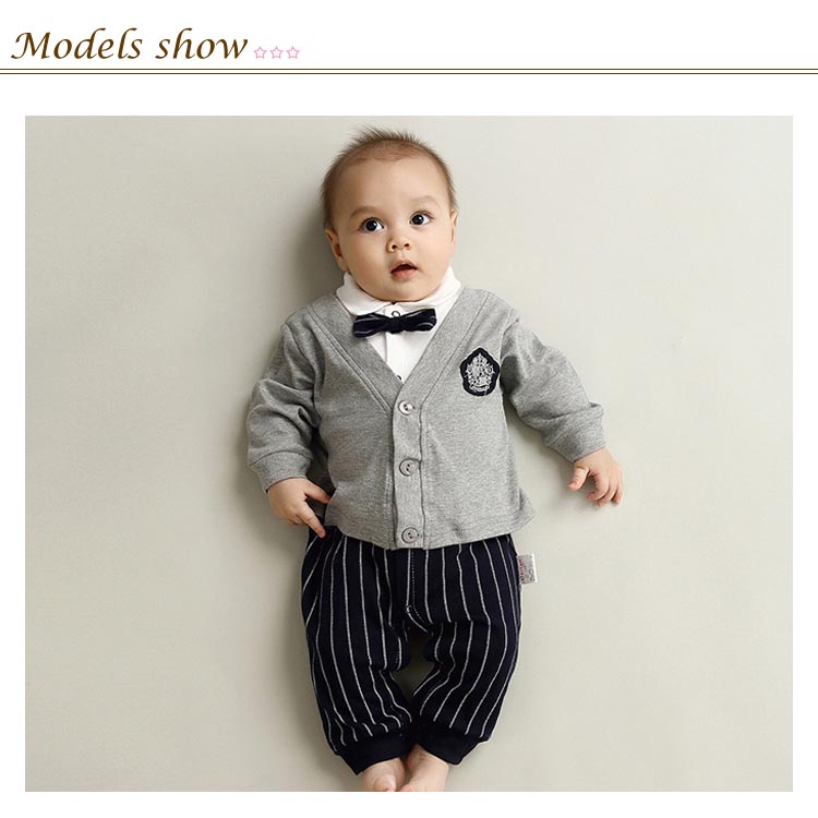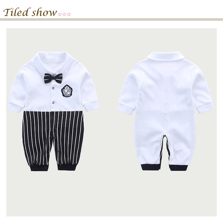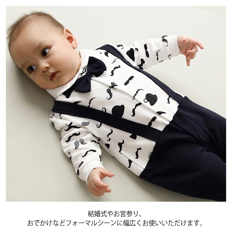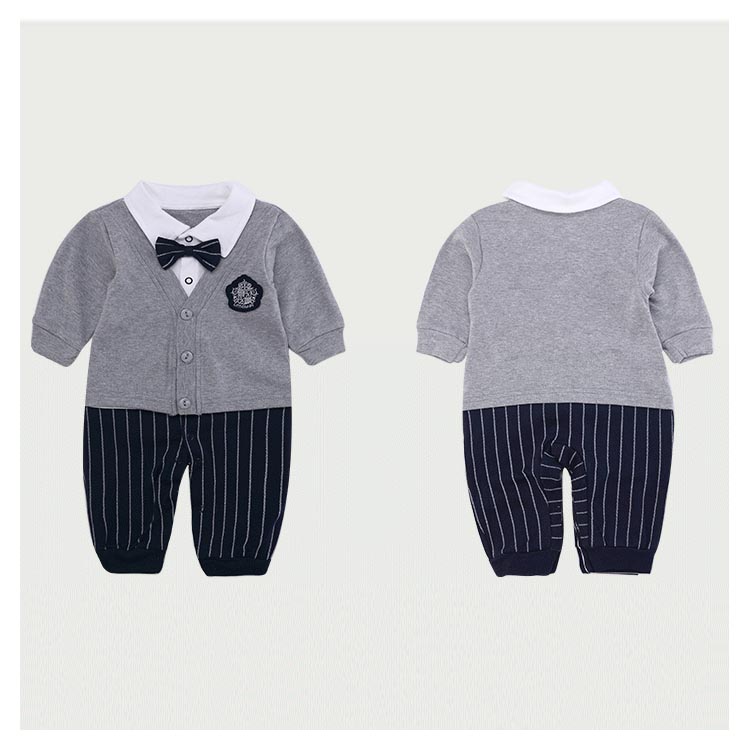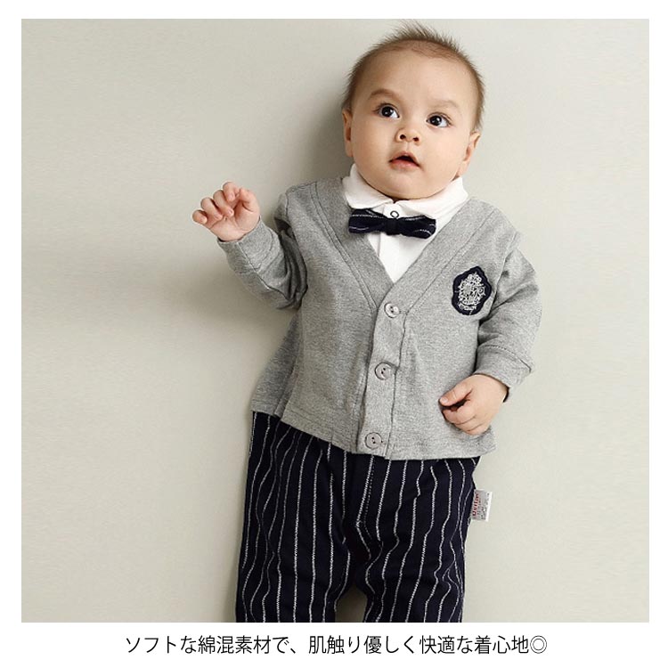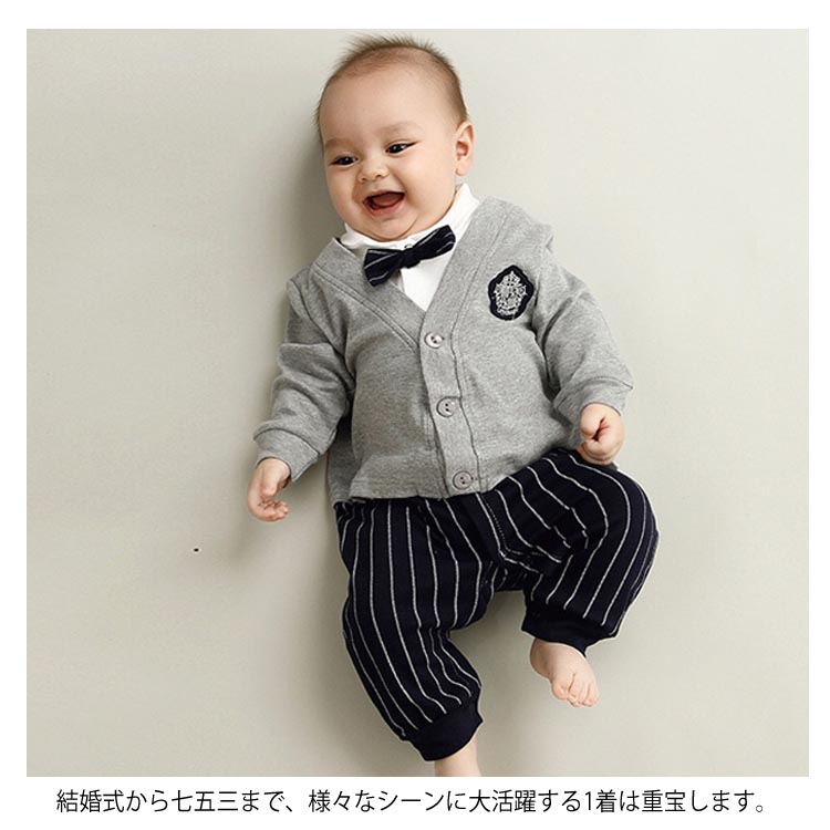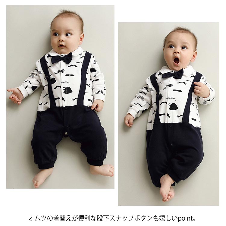 送料無料 新生児 フォーマル カバーオール ベビー ロンパース 男の子 蝶ネクタイ付 長袖 ボディースーツ セレモニー 紳士風 コスプレ 誕生日 結婚式 七五三 記念日 お宮参り 春秋 3ヶ月 6ヶ月 1歳 2歳