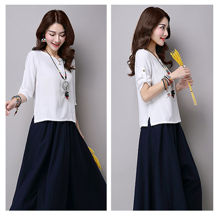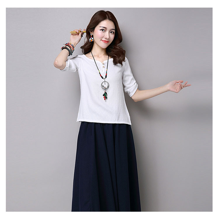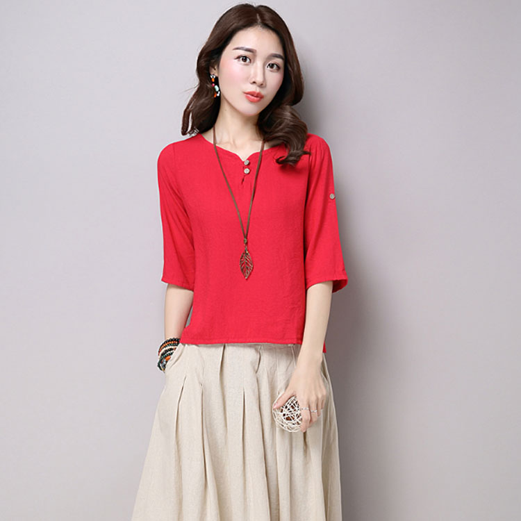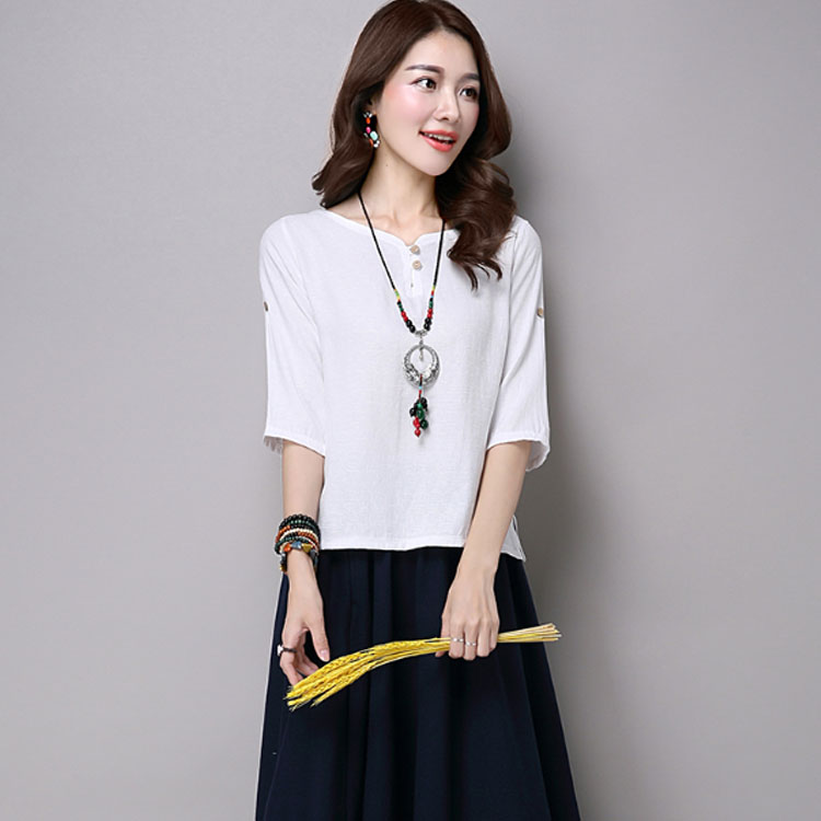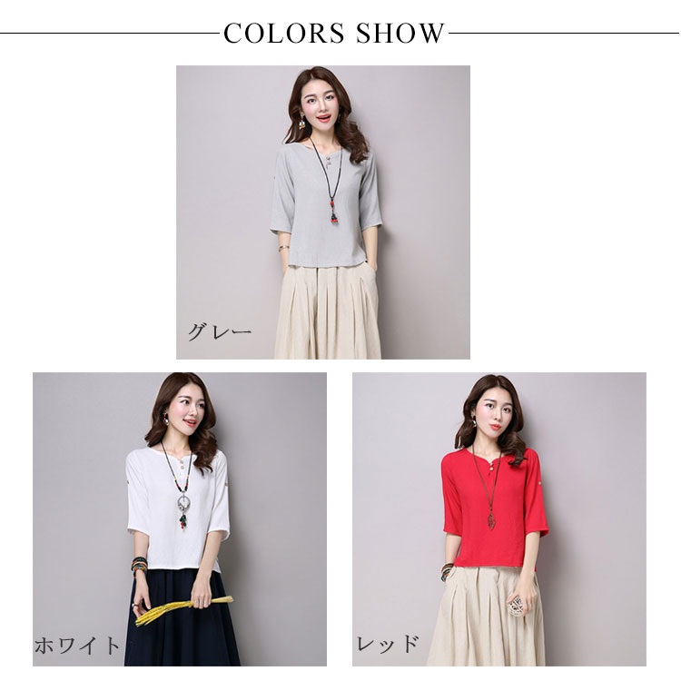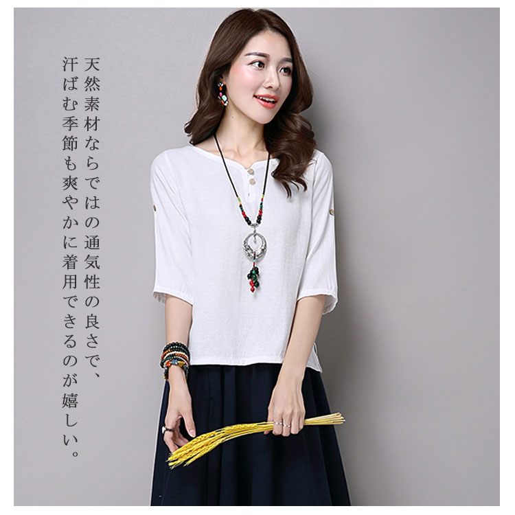 リネン トップス シャツ 7分袖 綿麻 Tシャツ レディース 綿麻 チュニック クルーネック リネン Tシャツ プルオーバー Tシャツ ブラウス ナチュラル ゆったり