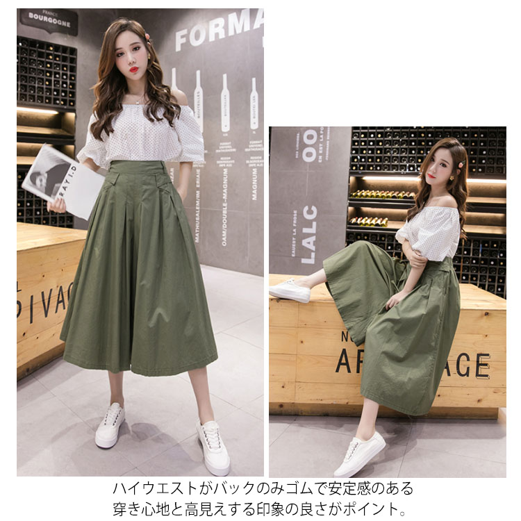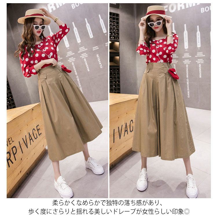 《送料無料》全4色!パンツ フレアパンツ レディース ワイドパンツ ガウチョパンツ スカーチョ 七分丈 ボトムス フレア シンプル 無地 美脚 体型カバー ゆるパンツ