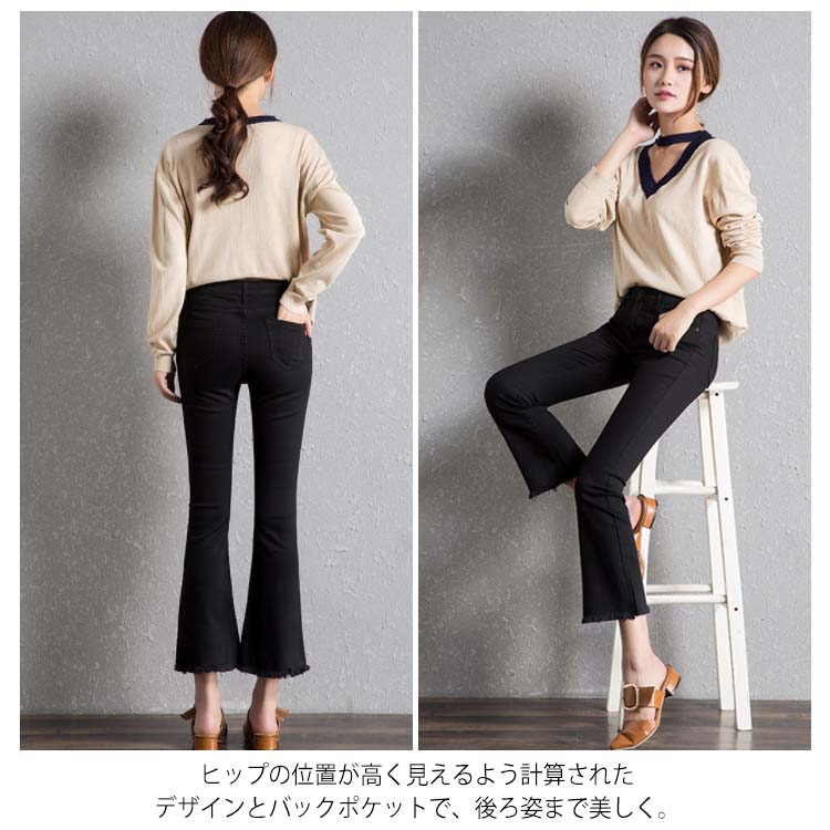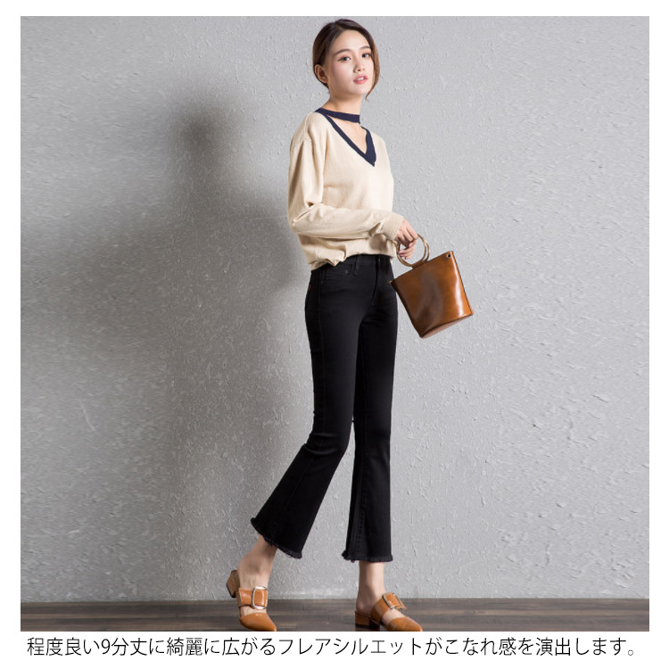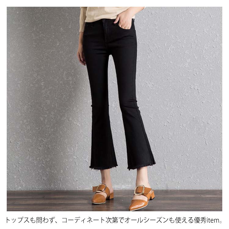 《送料無料》9分丈デニムパンツ スキニーデニム フレアパンツ デニムパンツ レディース スキニー ストレッチデニムパンツ 美脚パンツ ジーンズ 伸縮性 黒 大きサイズ