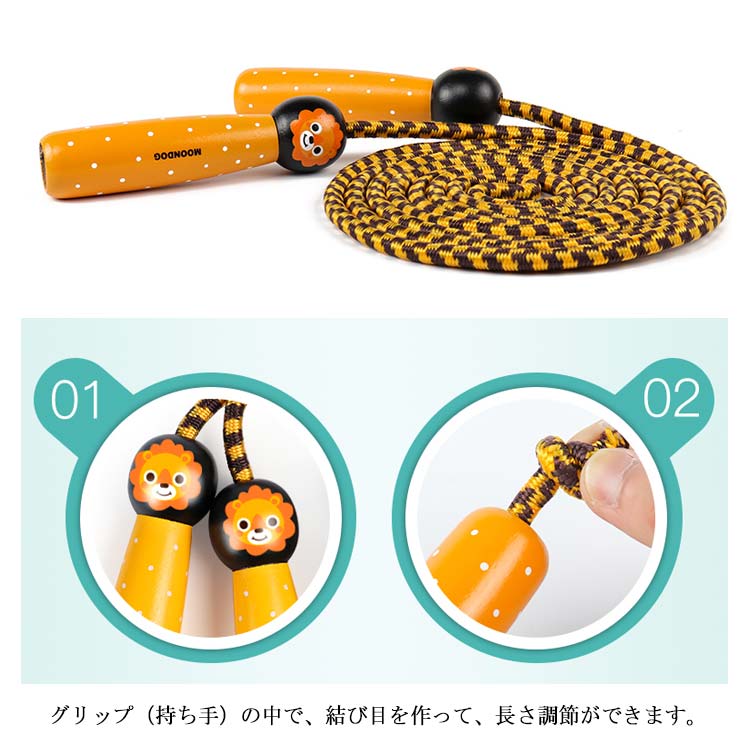子供用 縄跳び なわとび ロープ 木柄 木製グリップ 長さ調節可能 男の子 女の子 なわとび 300cm 幼児 とびなわ 縄飛び 運動会 体育祭 トレーニング ダイエット