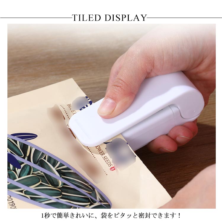 | シールや密封を簡単に行うことができるクリップシーラーです。 一度で食べ切れないスナック菓子やチルド食品を密封することで酸化や湿気を防ぎます。 1秒で簡単きれいに、袋をピタッと密封できます! 手作りのお菓子などの、プレゼント用のラッピングにもおすすめ! | |