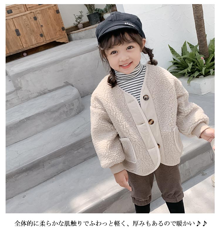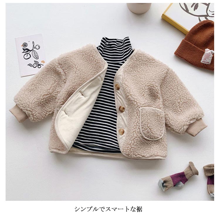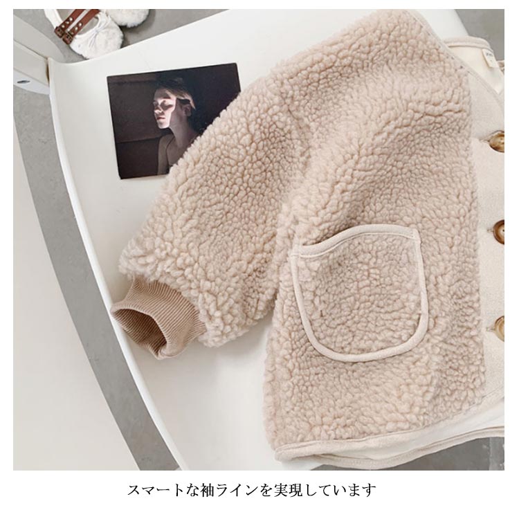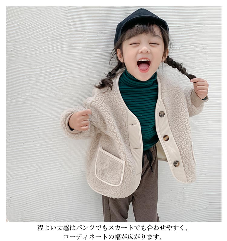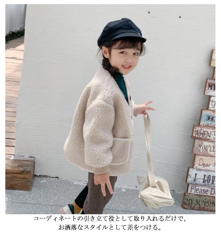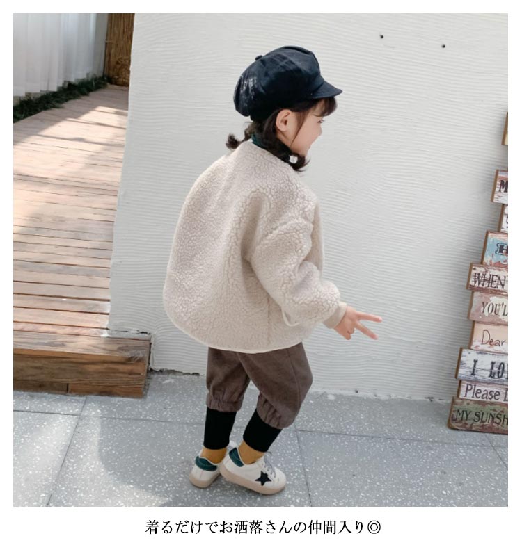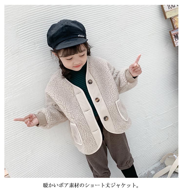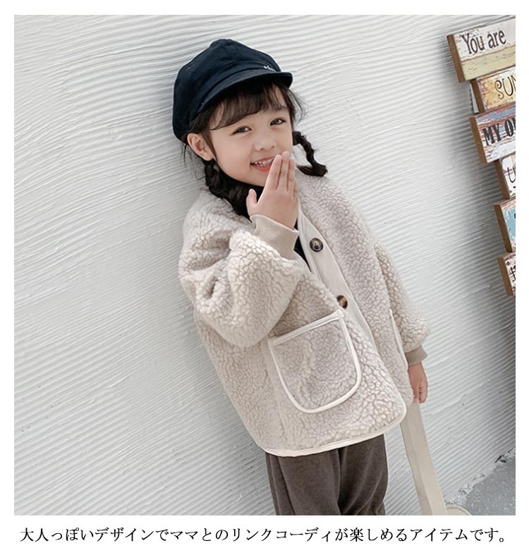 | 暖かいボア素材のショート丈ジャケット。 程よい丈感はパンツでもスカートでも合わせやすく、コーディネートの幅が広がります。 大人っぽいデザインでママとのリンクコーディが楽しめるアイテムです。 着るだけでお洒落さんの仲間入り◎ | |