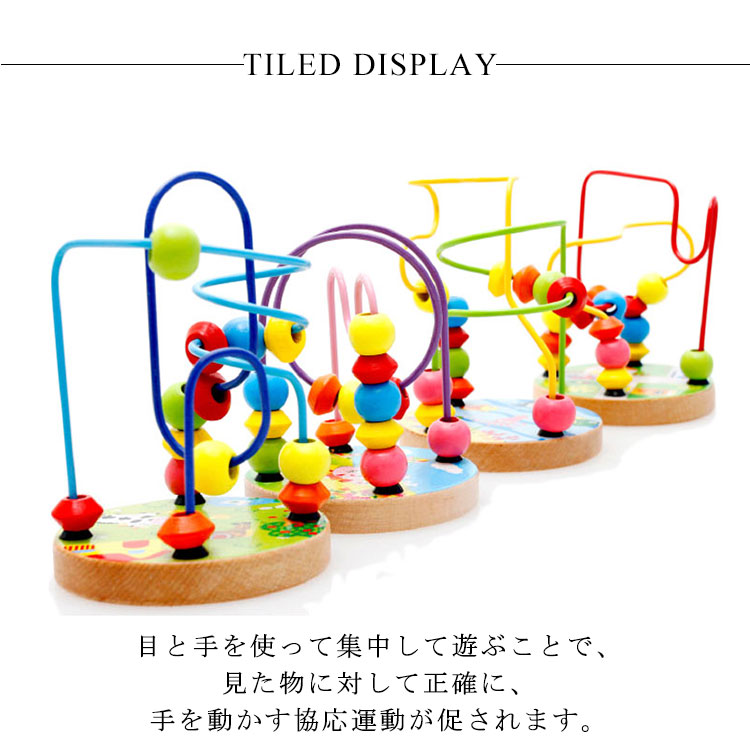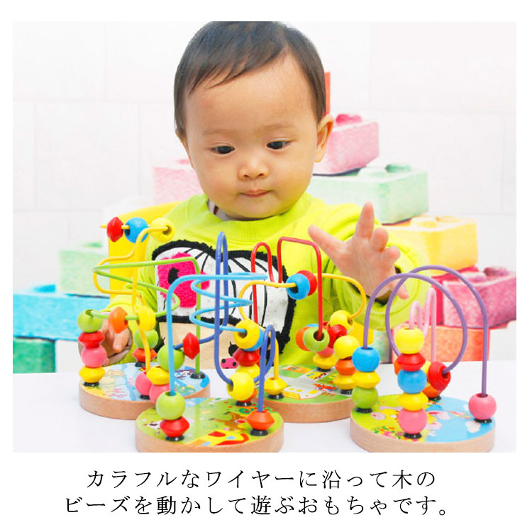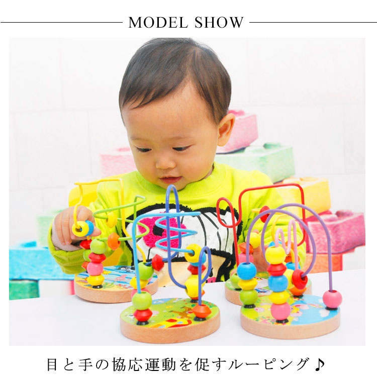 | 目と手の協応運動を促すルーピング♪ カラフルなワイヤーに沿って木のビーズを動かして遊ぶおもちゃです。 目と手を使って集中して遊ぶことで、見た物に対して正確に、手を動かす協応運動が促されます。 ベビーが夢中になってあそぶ姿にパパとママも夢中になってしまいそう。 | |
