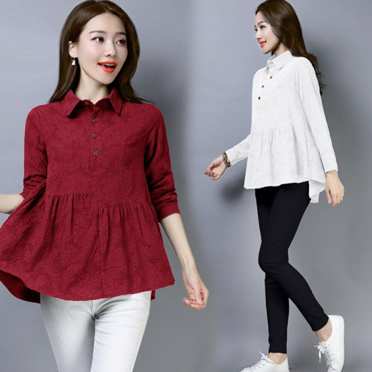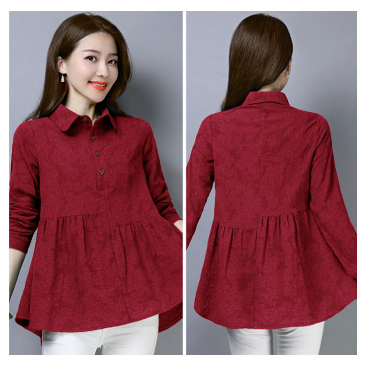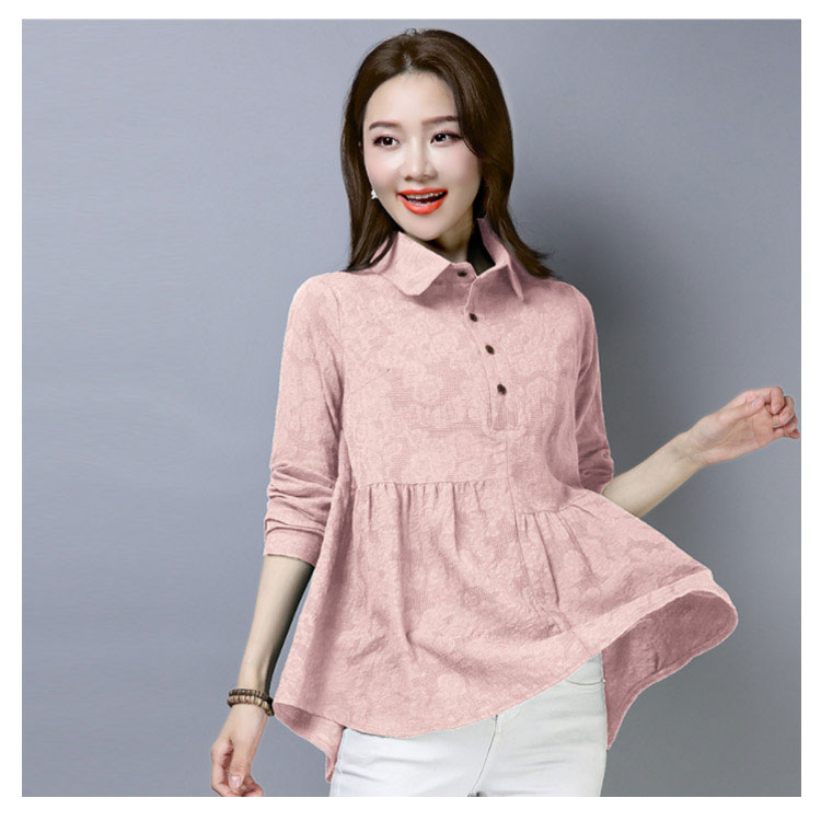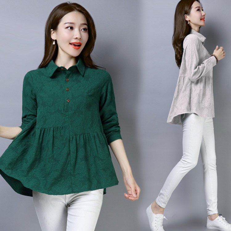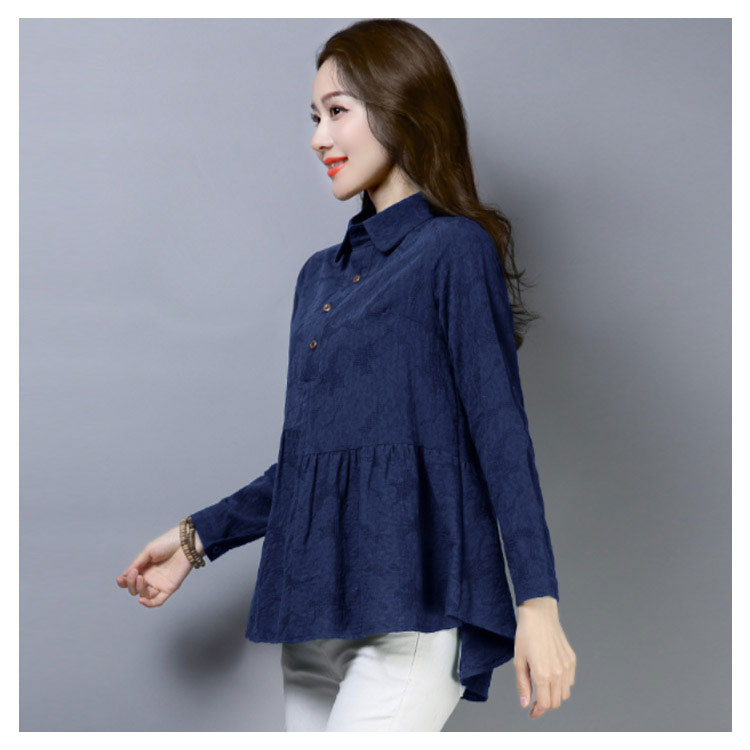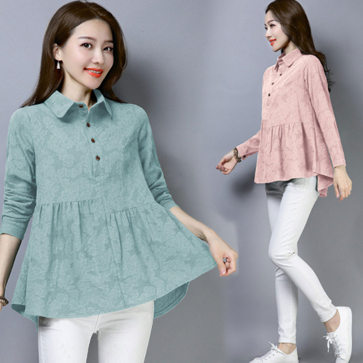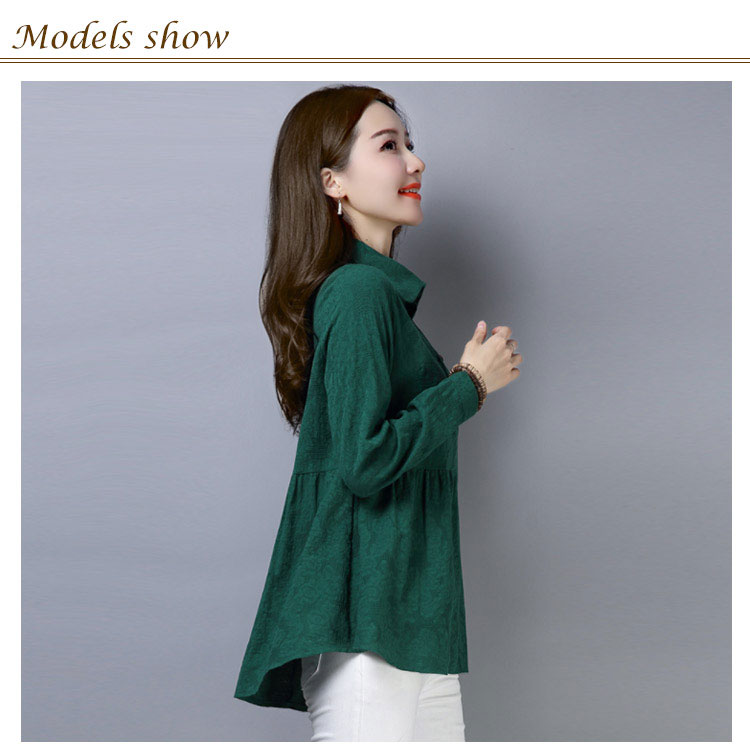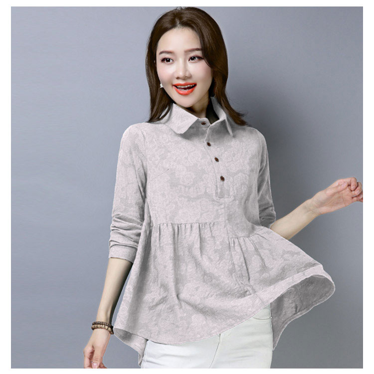 シャツ ブラウス レディース 長袖 トップス 綿麻 前開き 春秋 無地 フレアスリーブ 大きいサイズ ゆったり カジュアル ナチュラル お洒落 送料無料