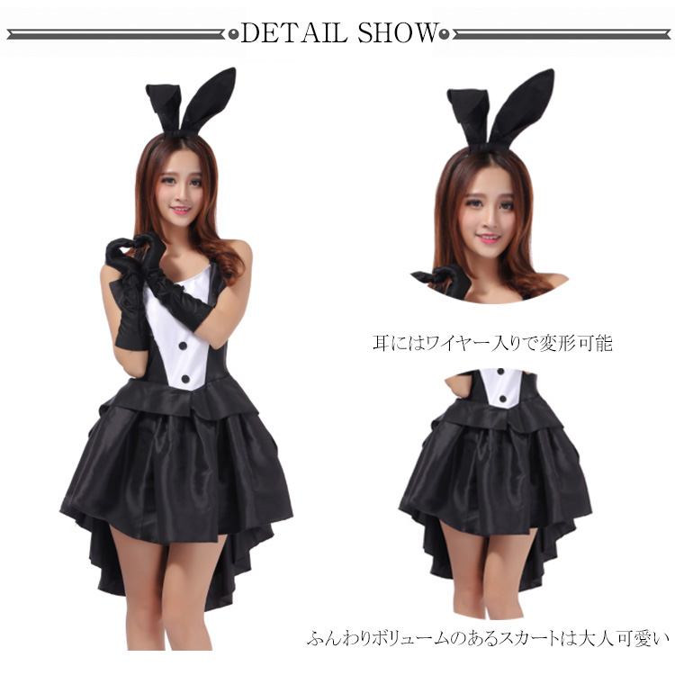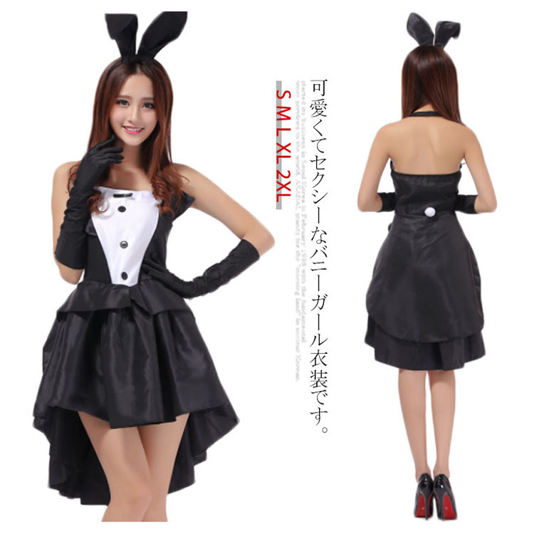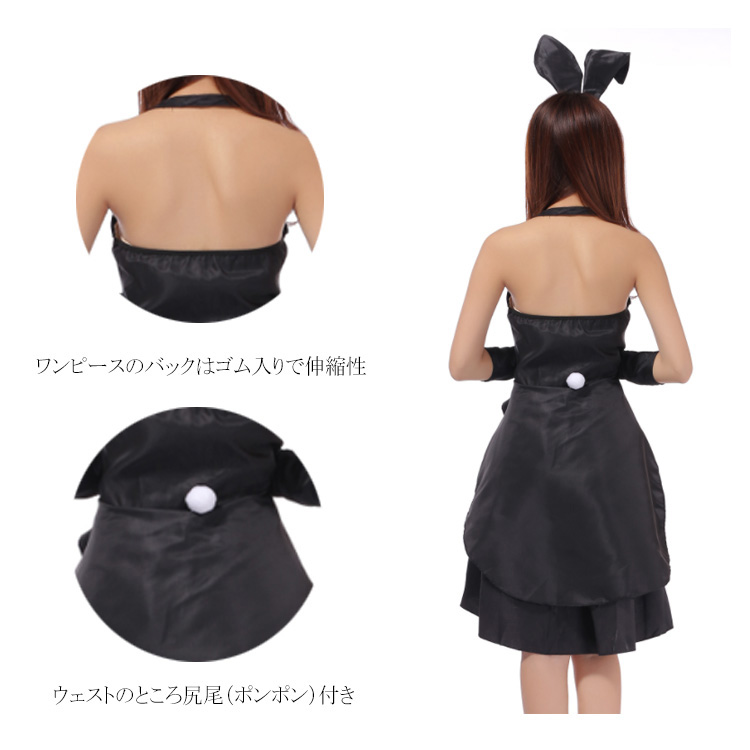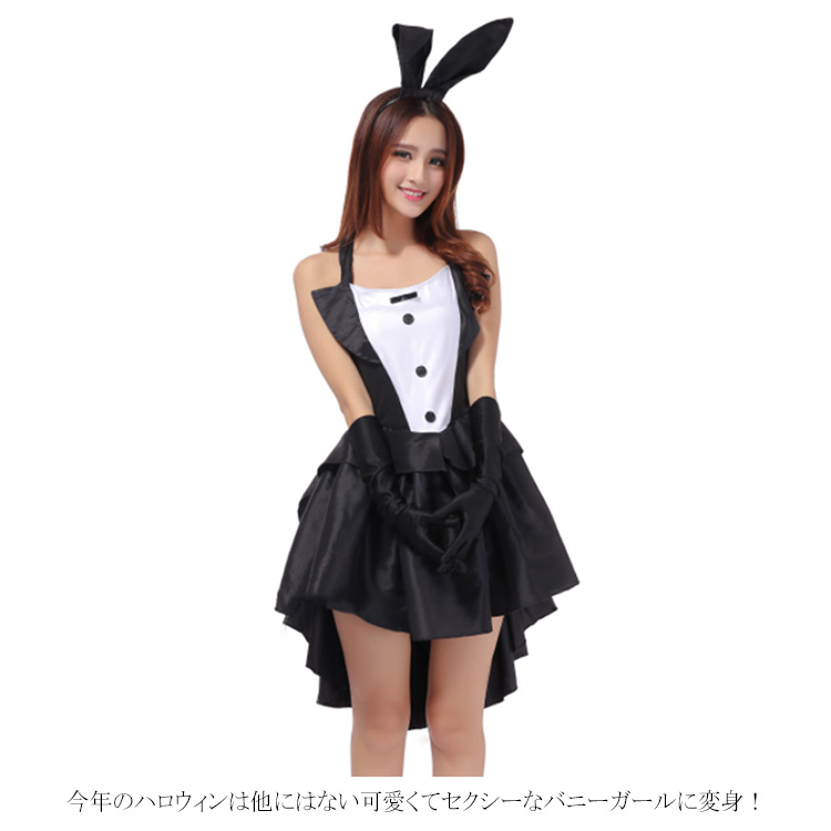 | 可愛くてセクシーなバニーガール衣装です。 激安な価格で超お得な3点セットは今GET! 今年のハロウィンは他にはない可愛くてセクシーなバニーガールに変身! パーティーやダンス衣装としても大人気! セット内容はワンピース+うさぎ耳付きカチューシャ+グローブの3点セットです。 | |