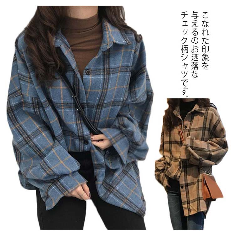 シャツ トップス ブラウス レディース チェックシャツ 長袖 チェック柄 アウター 羽織り 体型カバー 秋物 お洒落 カジュアル 厚手 送料無料