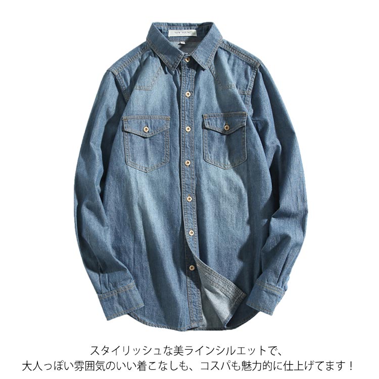 《送料無料》タイプも色も豊富!シャツ メンズ デニムシャツ ダンガリーシャツ デニム 長袖シャツ カジュアルシャツ ウエスタンシャツ コットンシャツ レギュラーカラー スタンドカラー 春 秋