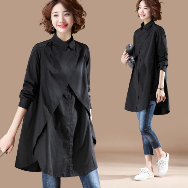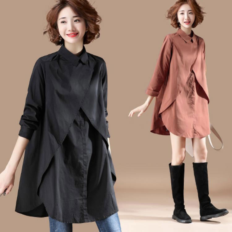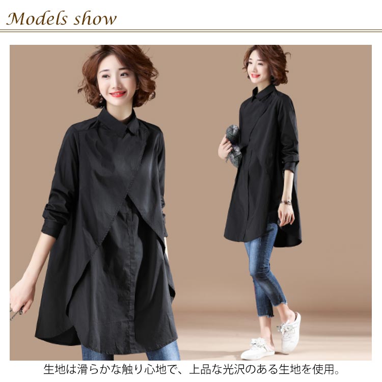シャツ 長袖 トップス レディース オーバーシャツ ロングシャツ ブラウス ロング丈 体型カバー フェミニン感 ゆったり お洒落 春秋物 カジュアル 大きいサイズ 送料無料