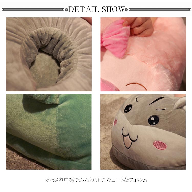 | 足元ぽかぽか暖かいフットクッション。 キュートなフルーツやアニマルモチーフかわいいフットウォーマー。 なめらかな肌触りの良い素材、たっぷり中綿入れて、ふんわりしたフォルムが暖かくて可愛い。 足先が冷えがちな冬には足を入れて暖かくてもこもこのフットクッション。 オフィスやお部屋、リビングにはもちろん、キャンプなどアウトドアの寒さ対策としてお勧めいたします。 | |