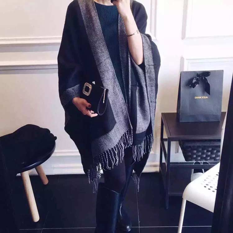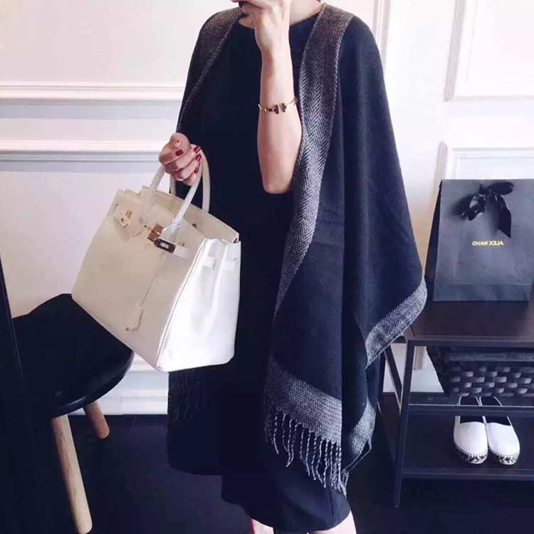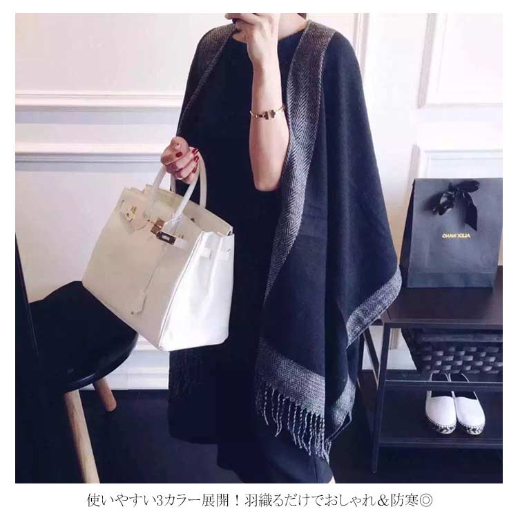 ケープ ポンチョ 大判ストール カシミヤタッチ ウール調 レディース スカーフ リバーシブル ストール 厚手 マフラー 大判 レディース 両面カラー バイカラー フリンジ ひざ掛け クリスマスプレゼント