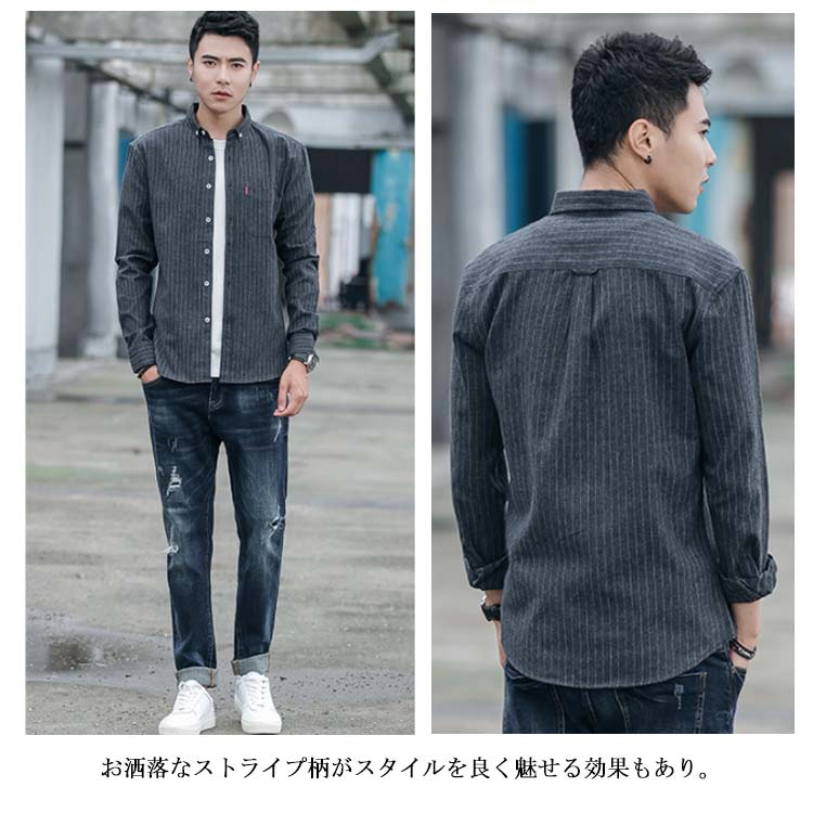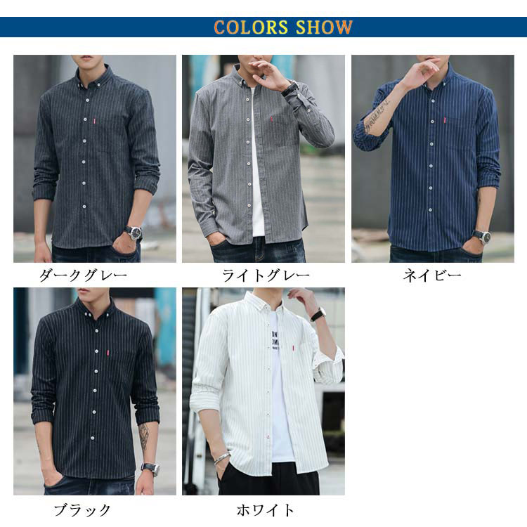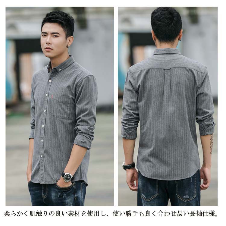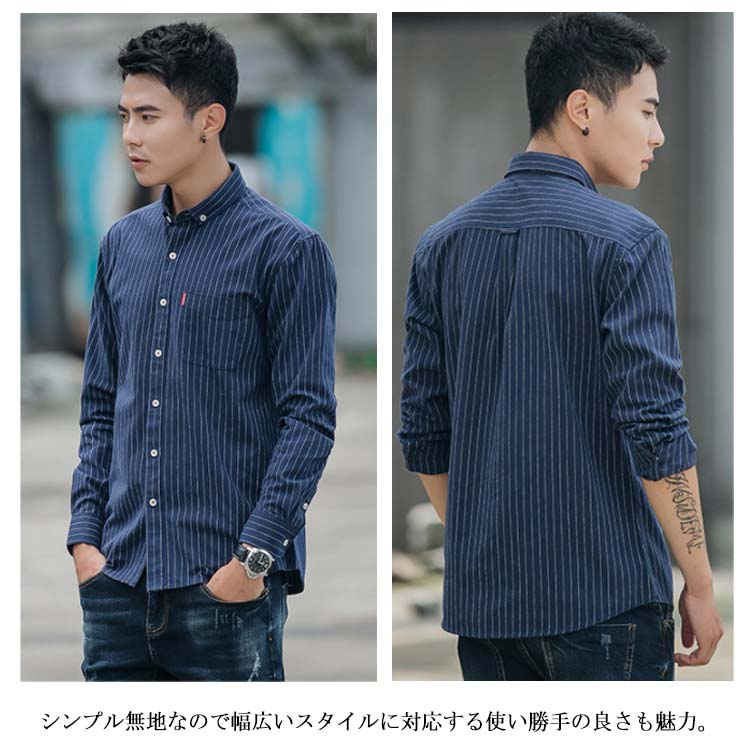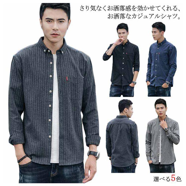 シャツ メンズ カジュアルシャツ 長袖 トップス ストライプ シンプル 無地 大人カジュアル 薄手 大きサイズ お洒落 リラックス メンズファッション 送料無料