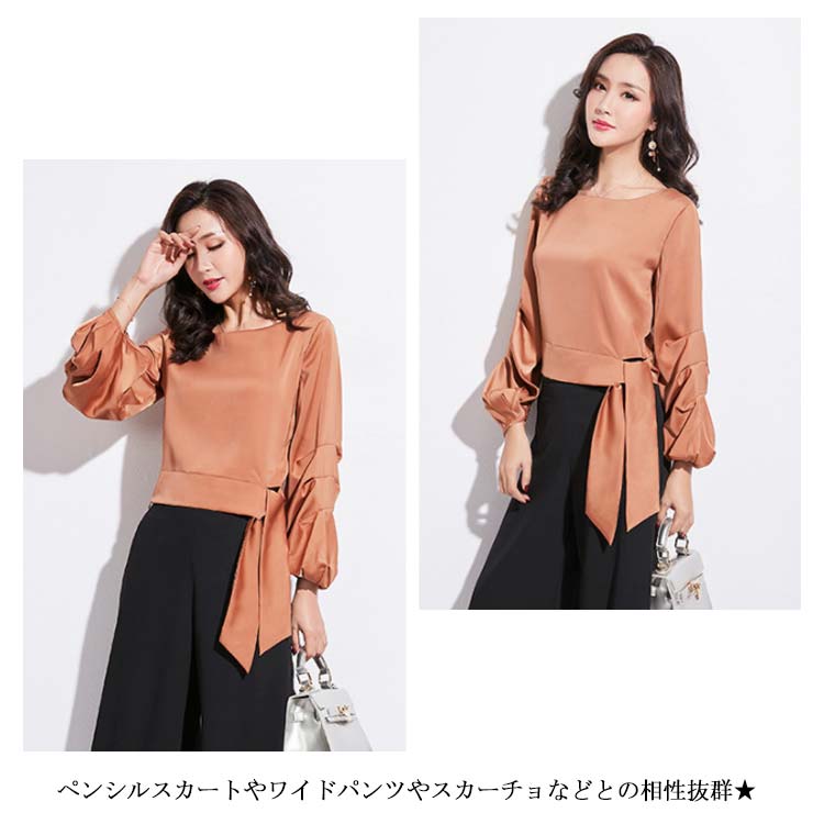 | 裾にリボンデザインのボリューム袖フェミニンブラウス! 女性らしい優しい雰囲気を漂わせるアイテムです。 ボリューム袖が女の子らしくとっても可愛い1枚です。 日々のワードローブに使える、好きな色をご用意しました。 ペンシルスカートやワイドパンツやスカーチョなどとの相性抜群★ | |