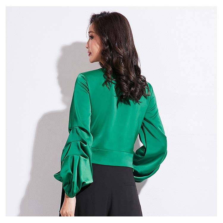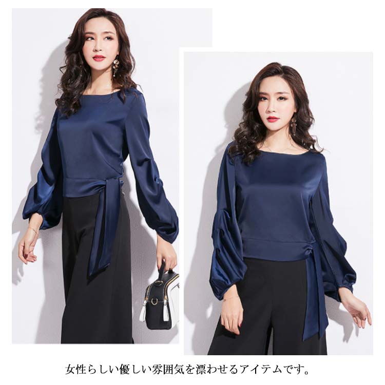 シャツ ブラウス Vネック 長袖 ベルト付き ボリューム袖 フレアシャツ チュニック トップス レディース 無地 エレガント フォマール 通勤 送料無料