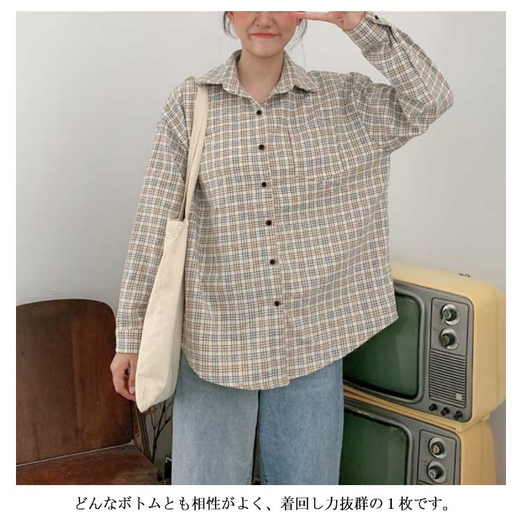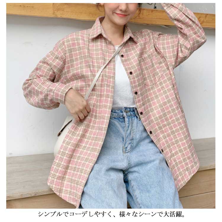 カジュアルシャツ レディース チエック柄 シャツ ラシャ 長袖 ゆったり レディース トップス 体型カバー おしゃれ アウター 厚手 秋服 送料無料