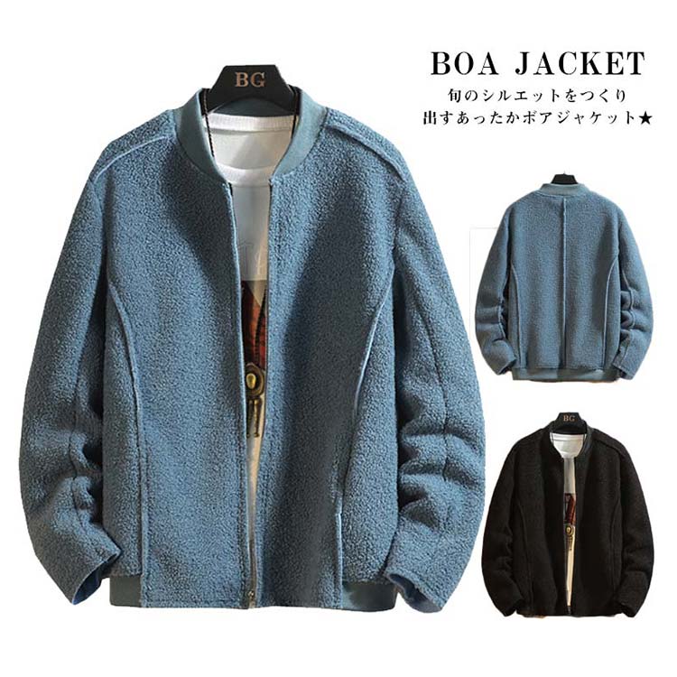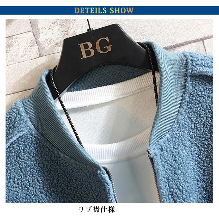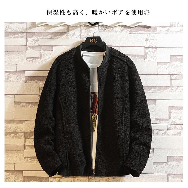 リブ襟仕様 ジャケット メンズ ボア ジャケット ボア ブルゾン コート ボア パーカー パーカ ライトアウター 秋 冬 ボア ジップ パーカー パーカ おしゃれ かっこいい モード系 ストリート系