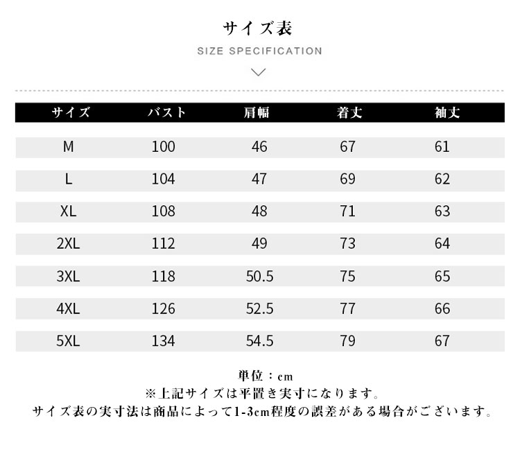 | サイズ | M L XL 2XL 3XL 4XL |