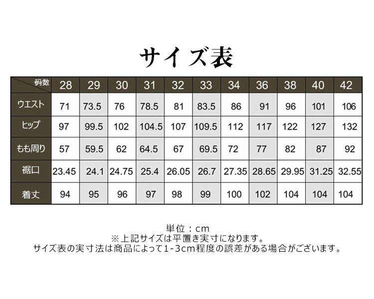 | サイズ | 28 29 30 31 32 33 34 36 38 40 42 |