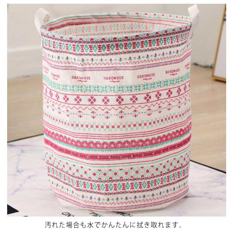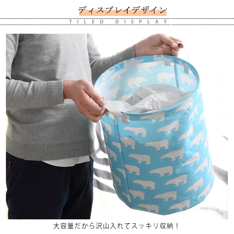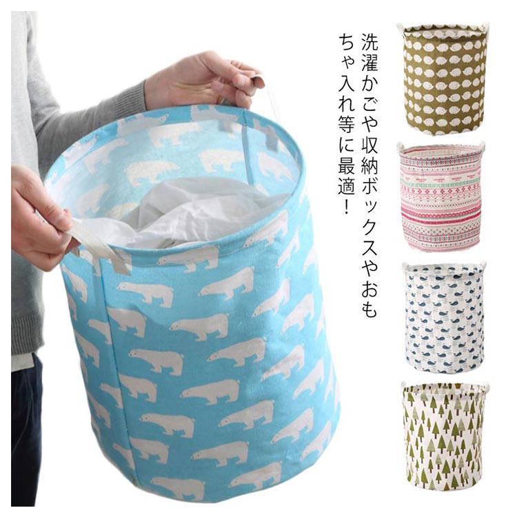 | 洗濯かごや収納ボックスやおもちゃ入れ等に最適! 大容量だから沢山入れてスッキリ収納! 高さ43cm×直径37.5cmの大容量サイズ。 使わないときは6cmまで折りたためます。 安心安全の布仕様で破損する心配がありません。 両手で持てるように持ち手がついて、持ち運びが便利。 内側は撥水加工になっているので、濡れているものでも気にせずに入れれます。 汚れた場合も水でかんたんに拭き取れます。 | |