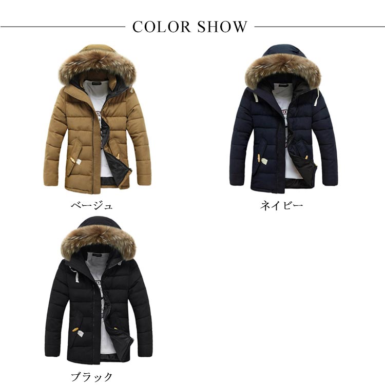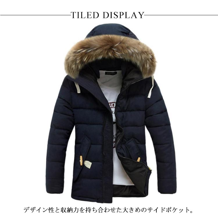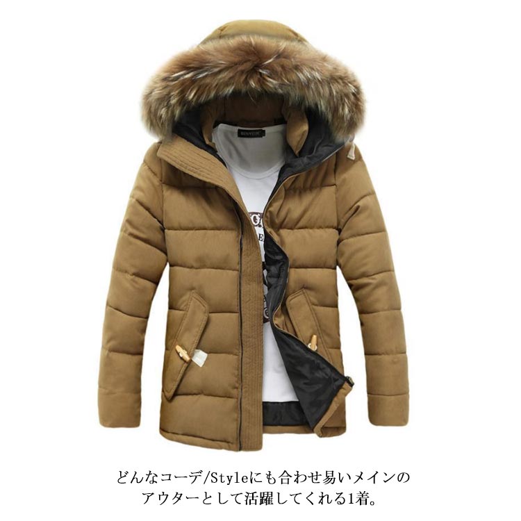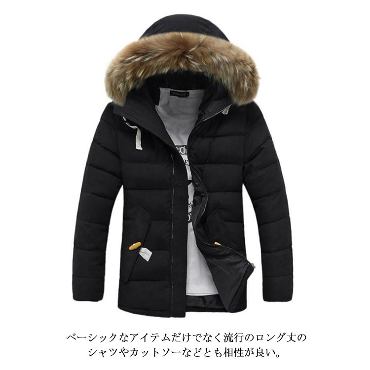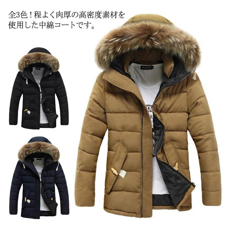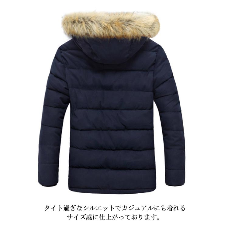 中綿コート メンズ 中綿ジャケット アウター フェイクファー フード付き ジャンパー 体型カバー ポケット付き 厚手 防寒 冬物 冬服 暖かい