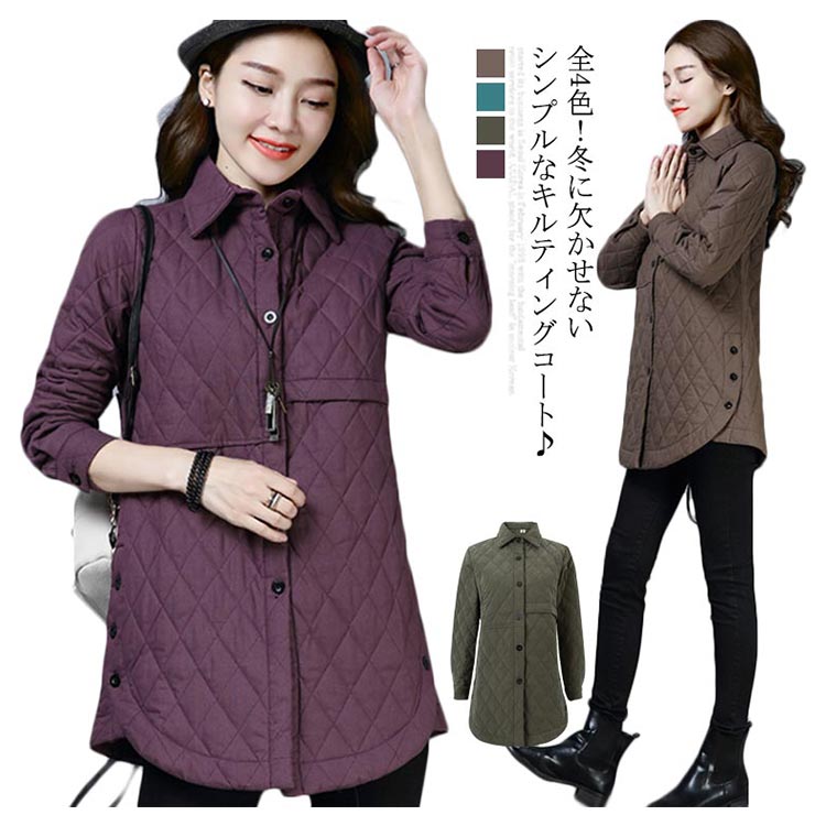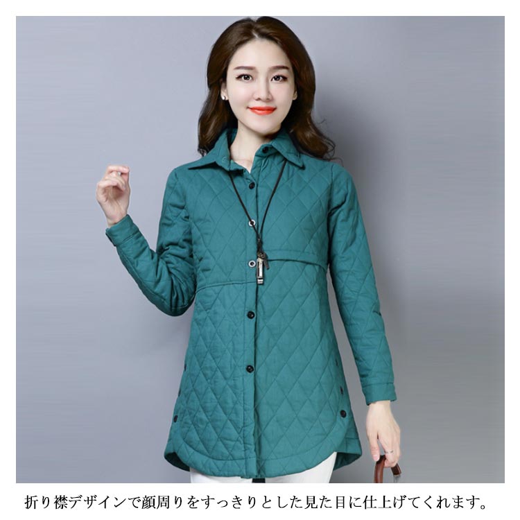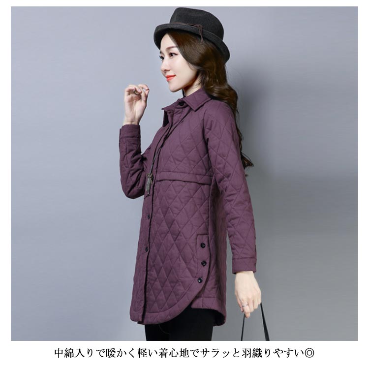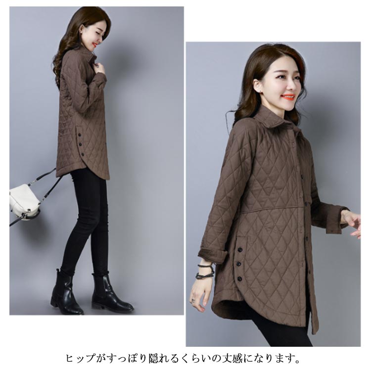 中綿コート レディース キルティング 中綿入り ロング丈 綿麻コート キルティングコート アウター 暖かい 体型カバー 大きいサイズ 着痩せ 冬物 30代 40代 50代