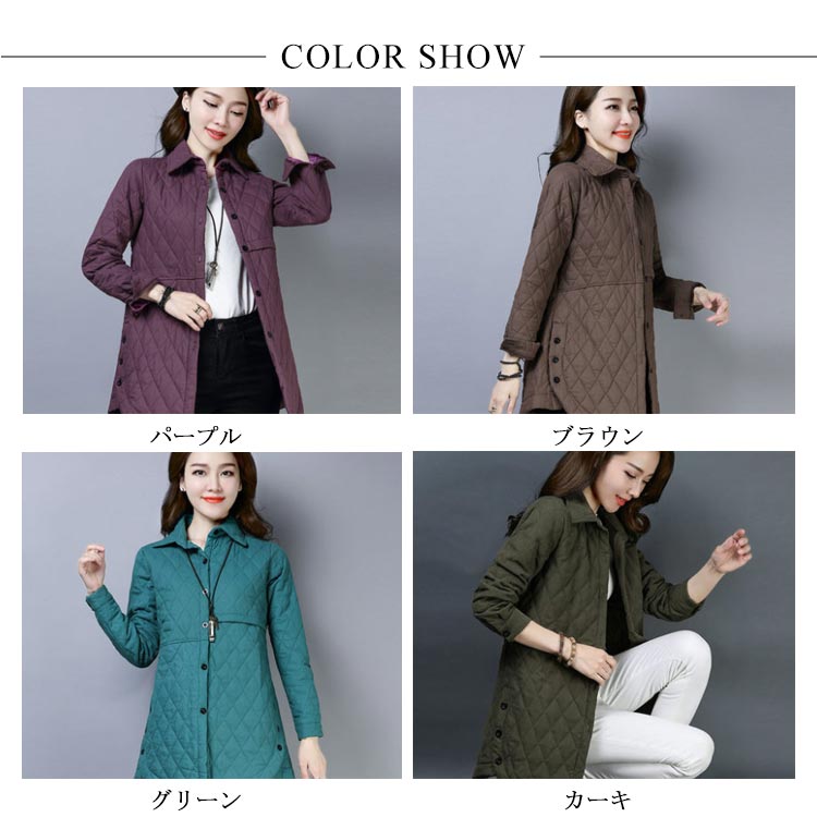 | 全4色!冬に欠かせないシンプルなキルティングコート♪ 中綿入りで暖かく軽い着心地でサラッと羽織りやすい◎ ヒップがすっぽり隠れるくらいの丈感になります。 キルティングデザインで女性らしい可愛さを演出。 折り襟デザインで顔周りをすっきりとした見た目に仕上げてくれます。 | |