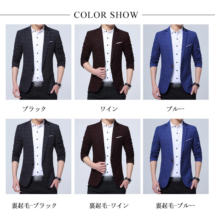 テーラードジャケット メンズ スーツジャケット ジャケット 裏起毛 スーツ チェック柄 ビジネス 紳士服 通勤 アウター 細身 春秋冬 大きいサイズ お洒落