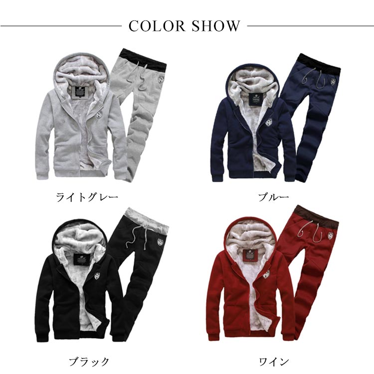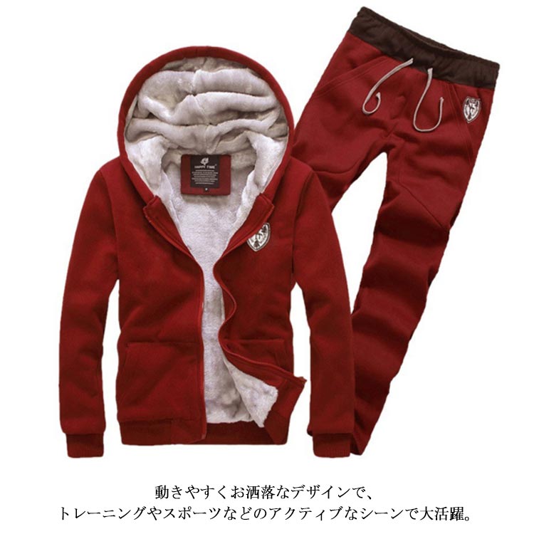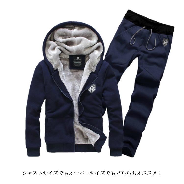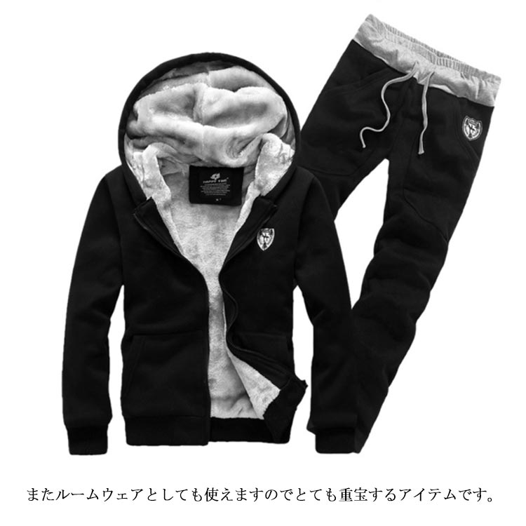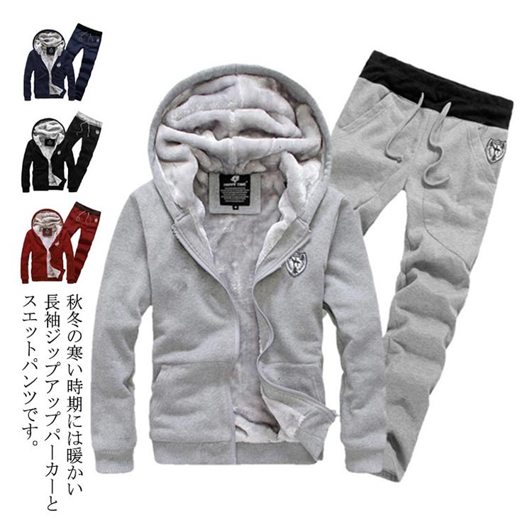 セットアップ メンズ フード付き ジャージ 裏ボア 上下セット 裏起毛 パーカー ジップアップ 厚手 スウェット スポーツウェア 防寒 秋冬 お洒落