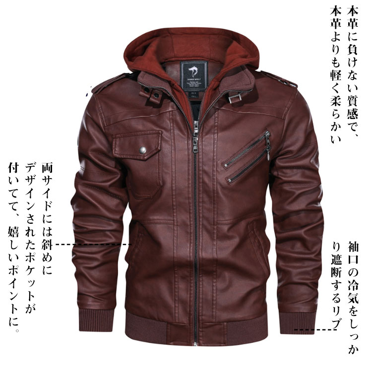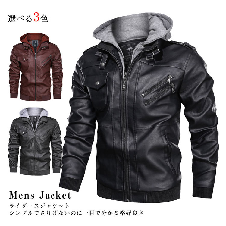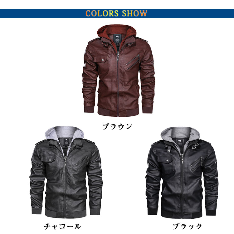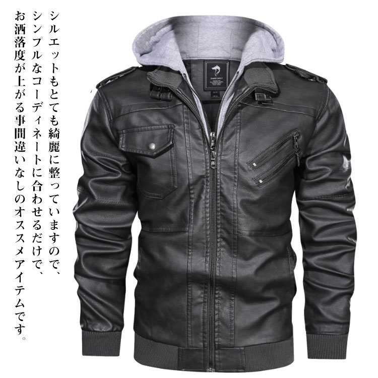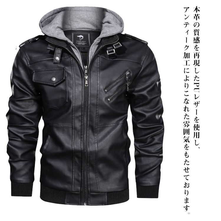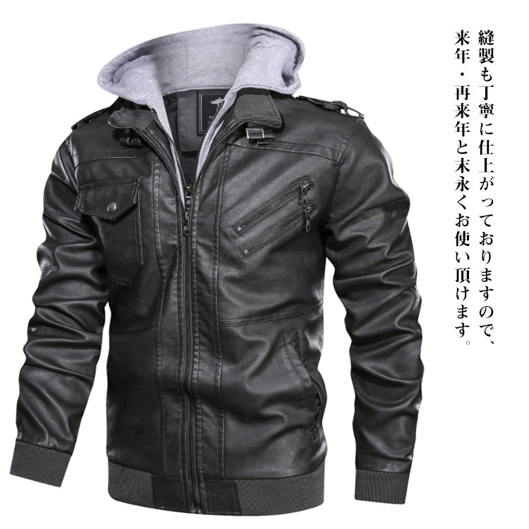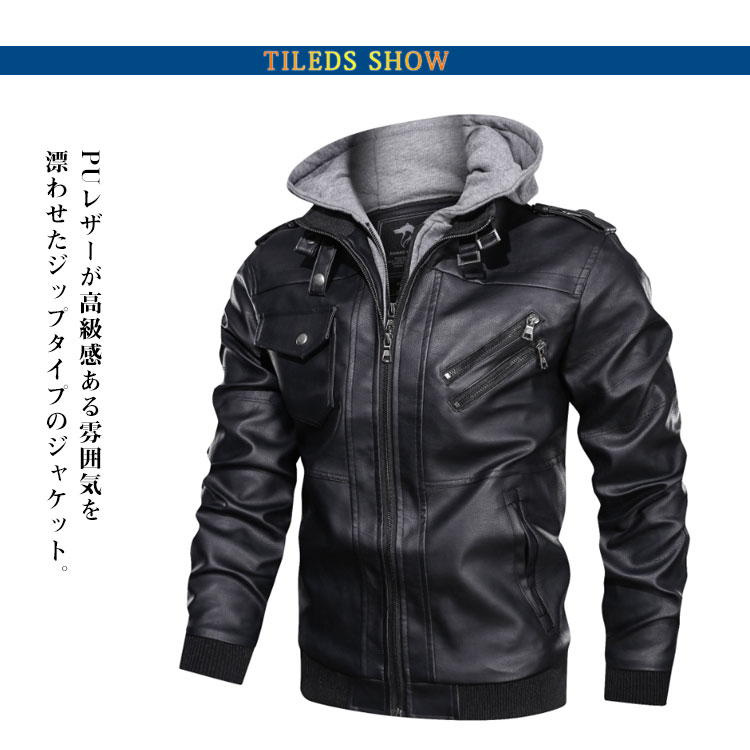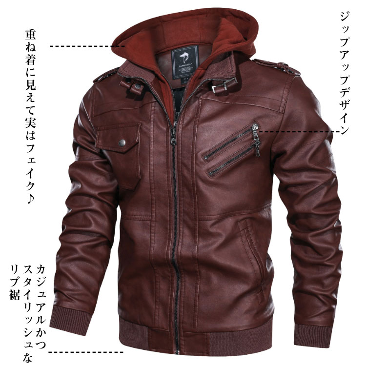 重ね着風 PUレザー ジャケット メンズ 革ジャケット 皮ジャケット レザー ライダースジャケット フェイク レザー ジャケット ミリタリージャケット ライトアウター ブルゾン