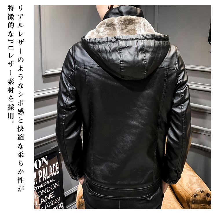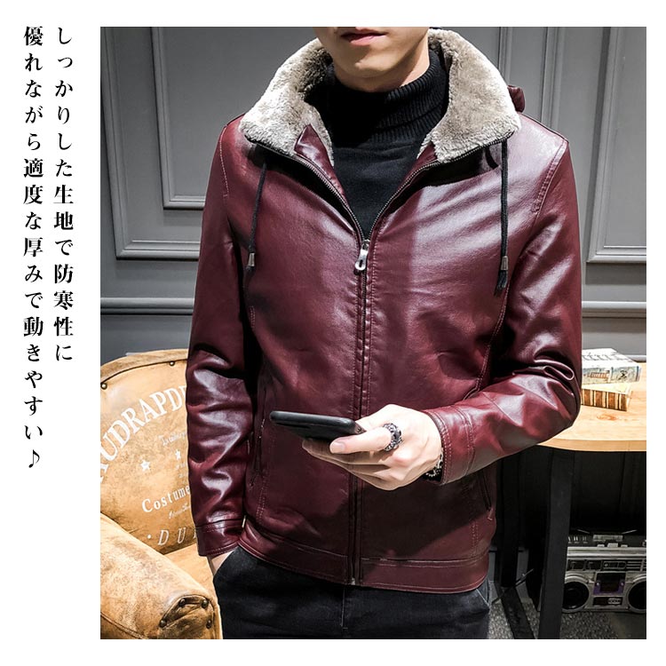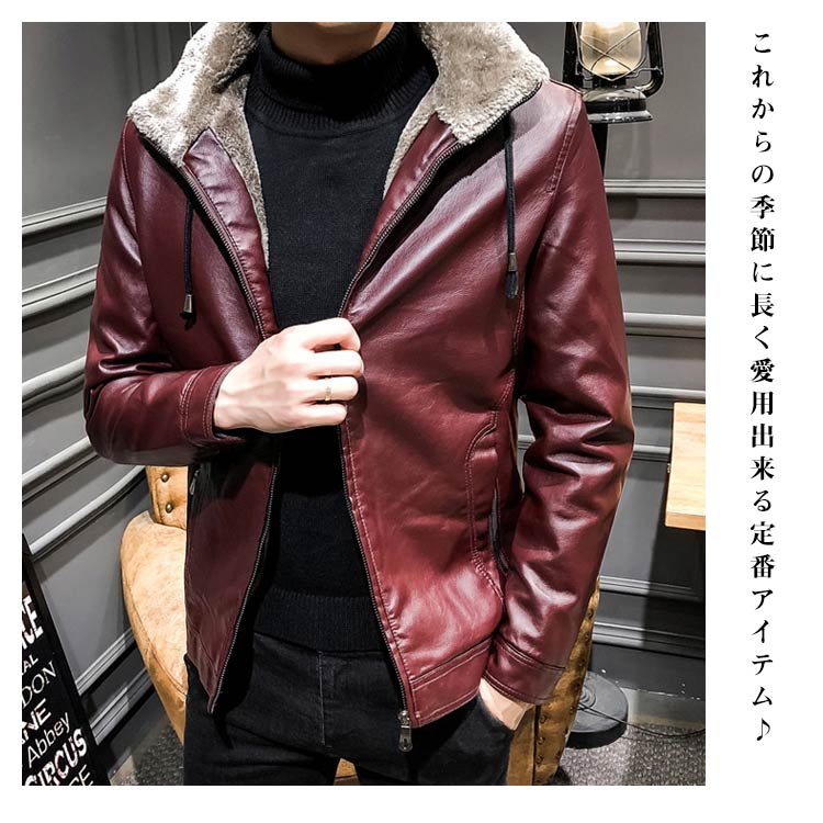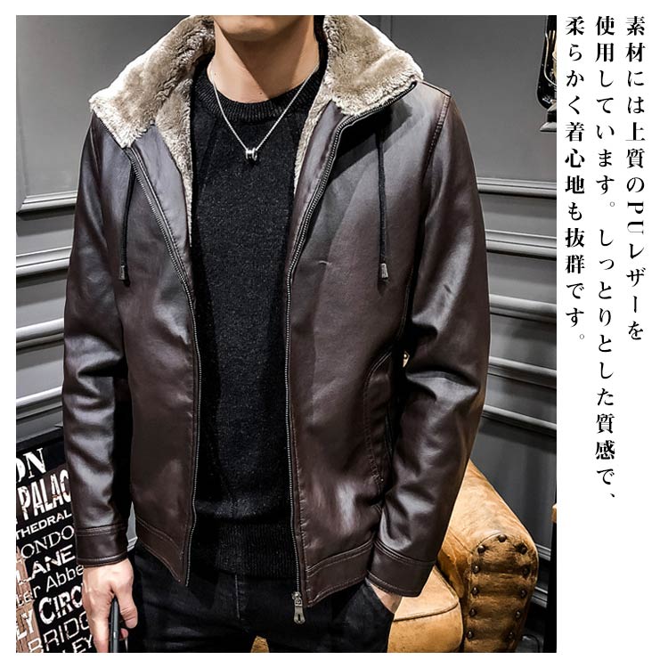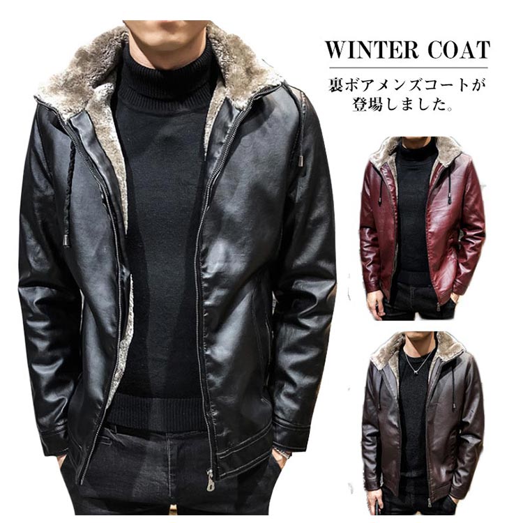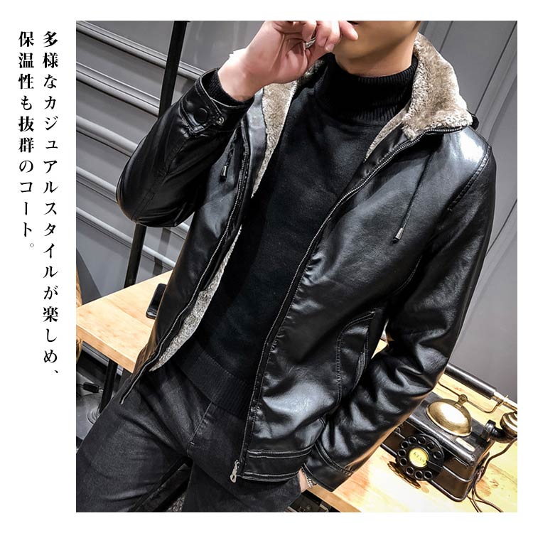 裏ボア ジャケット フェイク レザージャケット ライダースジャケット 裏ボア コート PU レザー ジャケット コート メンズ ボア ジャケット コート 防寒着 革ジャン アメカジ系 アウター