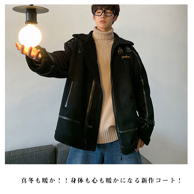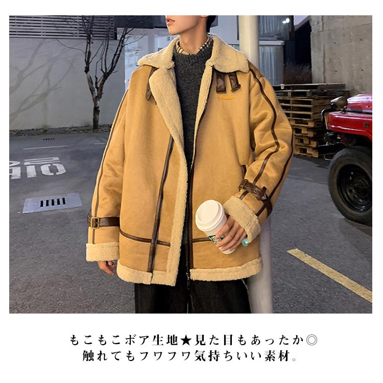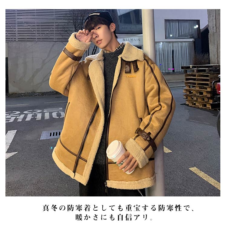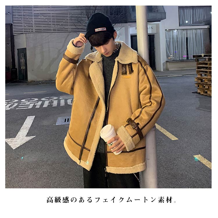 裏ボア コート ムートンコート メンズ ムートン コート ボア フェイク ムートンコート ジャケット ブルゾン ボアブルゾン ボアジャケット ボアコート 防寒 ストリート アメカジ 秋 冬