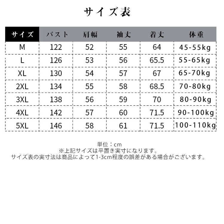 | サイズ | M L XL 2XL 3XL 4XL 5XL |