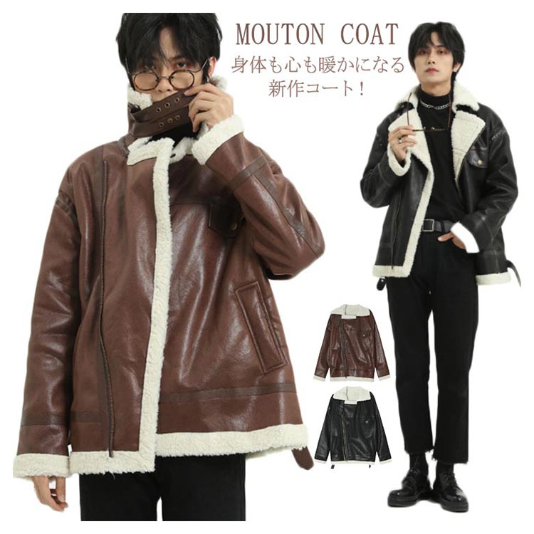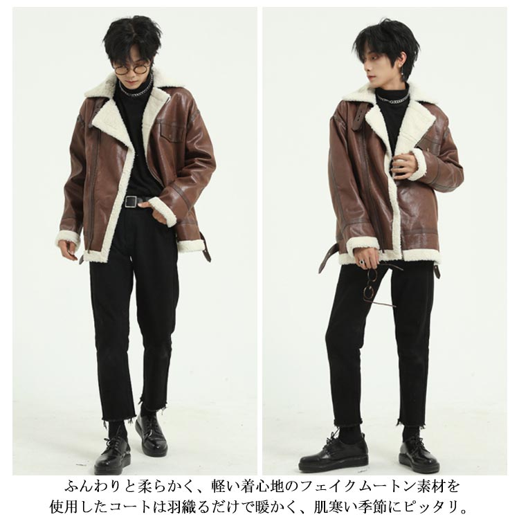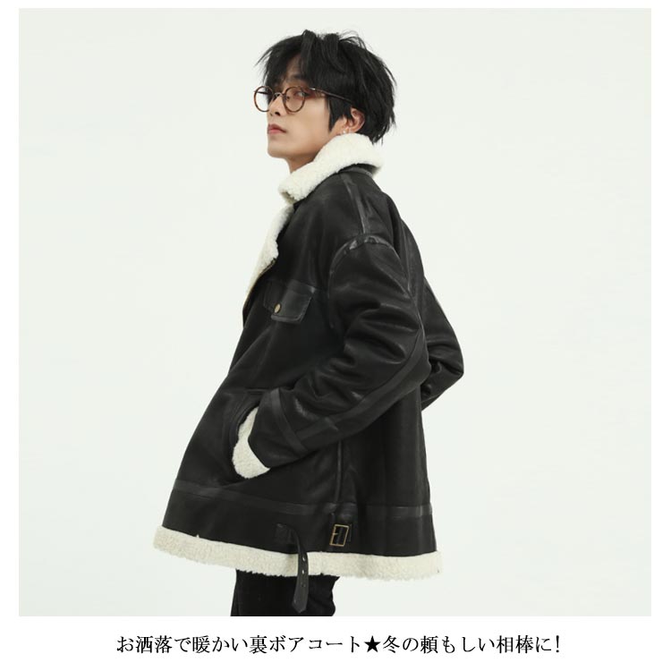 裏ボア コート ムートン コート ムートンコート 防寒 メンズ フェイク ジャケット ブルゾン ボア ボアブルゾン ボアジャケット ボアコート ストリート アメカジ 秋 冬