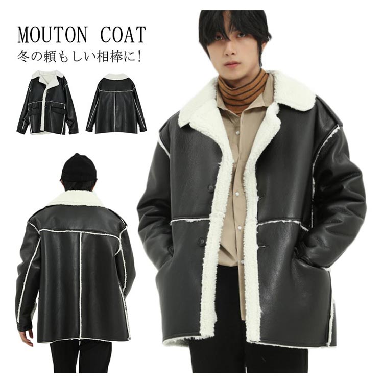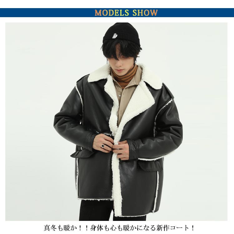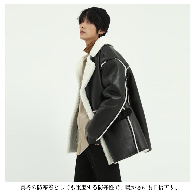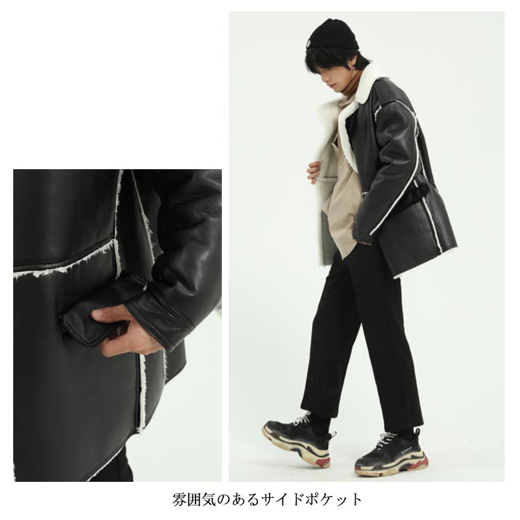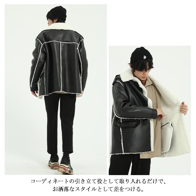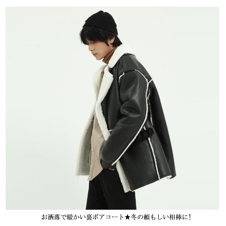 ボアコート ストリート ムートンコート 裏ボア コート ムートン コート 防寒 メンズ フェイク ジャケット ブルゾン ボア ボアブルゾン ボアジャケット アメカジ 秋 冬