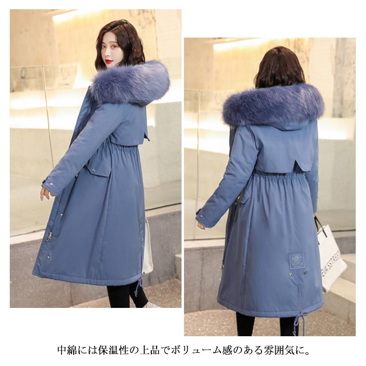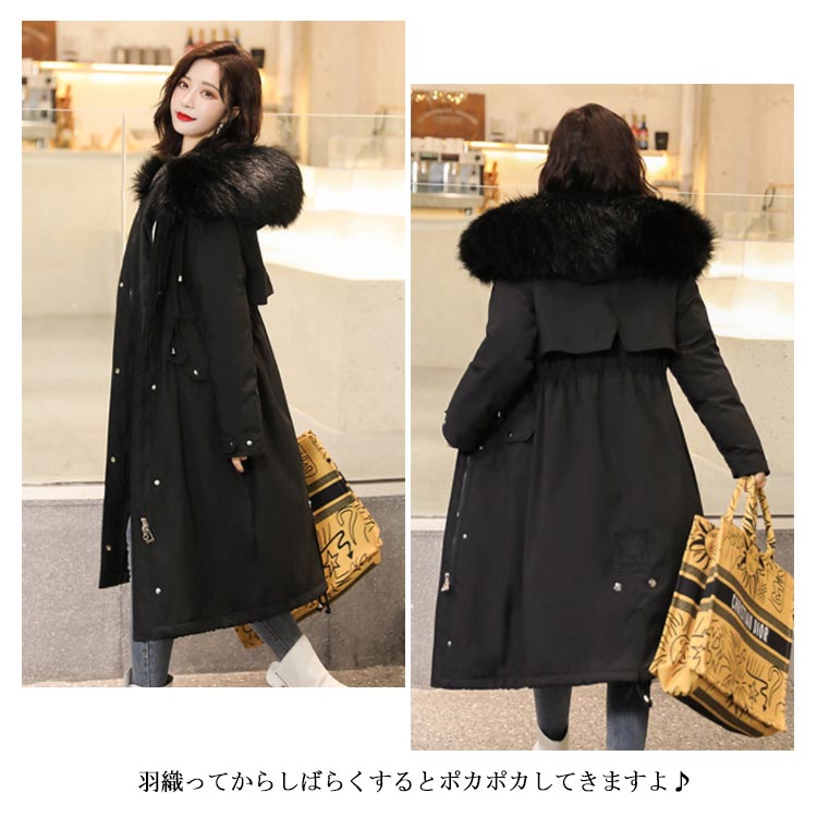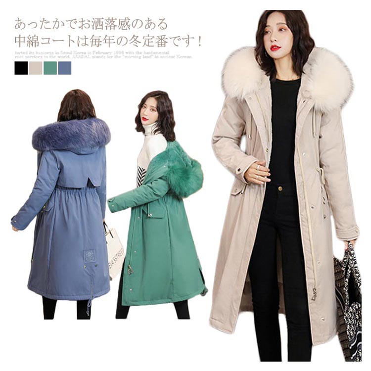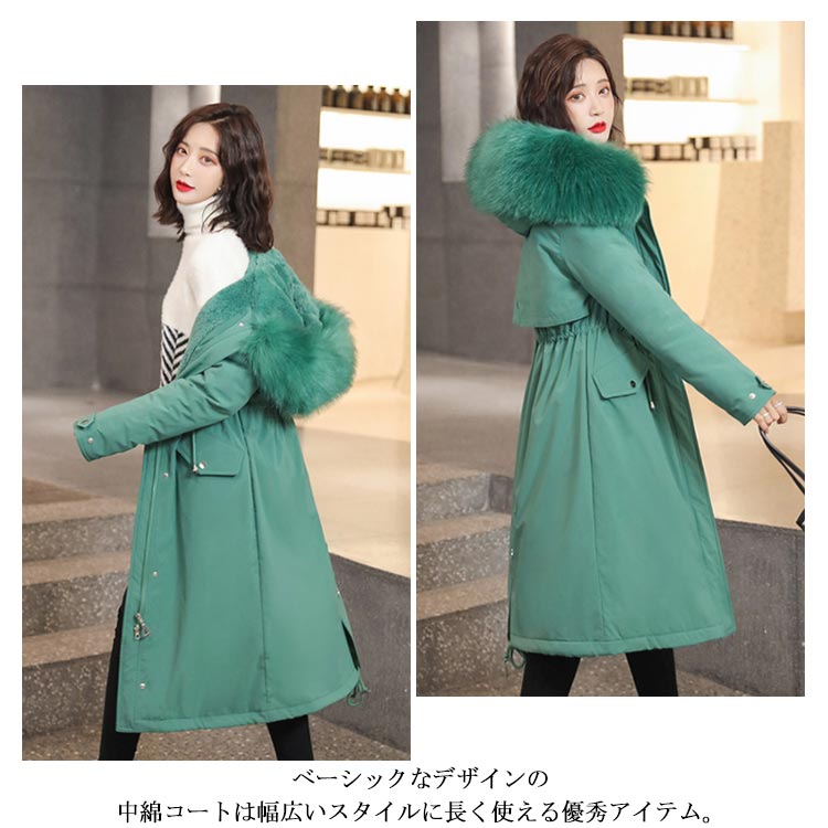 中綿コート レディース ロングコート 裏起毛 アウター ファー ロング丈 フード付き ゆったり 体型カバー 着痩せ 防寒服 冬物 お洒落
