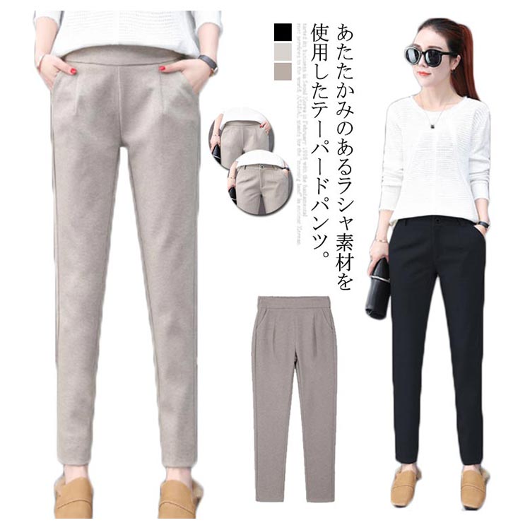 テーパードパンツ レディース ロングパンツ パンツ サルエル ボトムス ラシャ風 ゆったり 着痩せ シンプル 通勤 通学 お洒落 厚手 秋冬 美脚